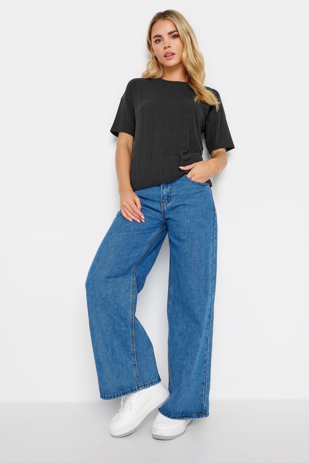 Рубчатая футболка свободного кроя Pixiegirl Petite, черный