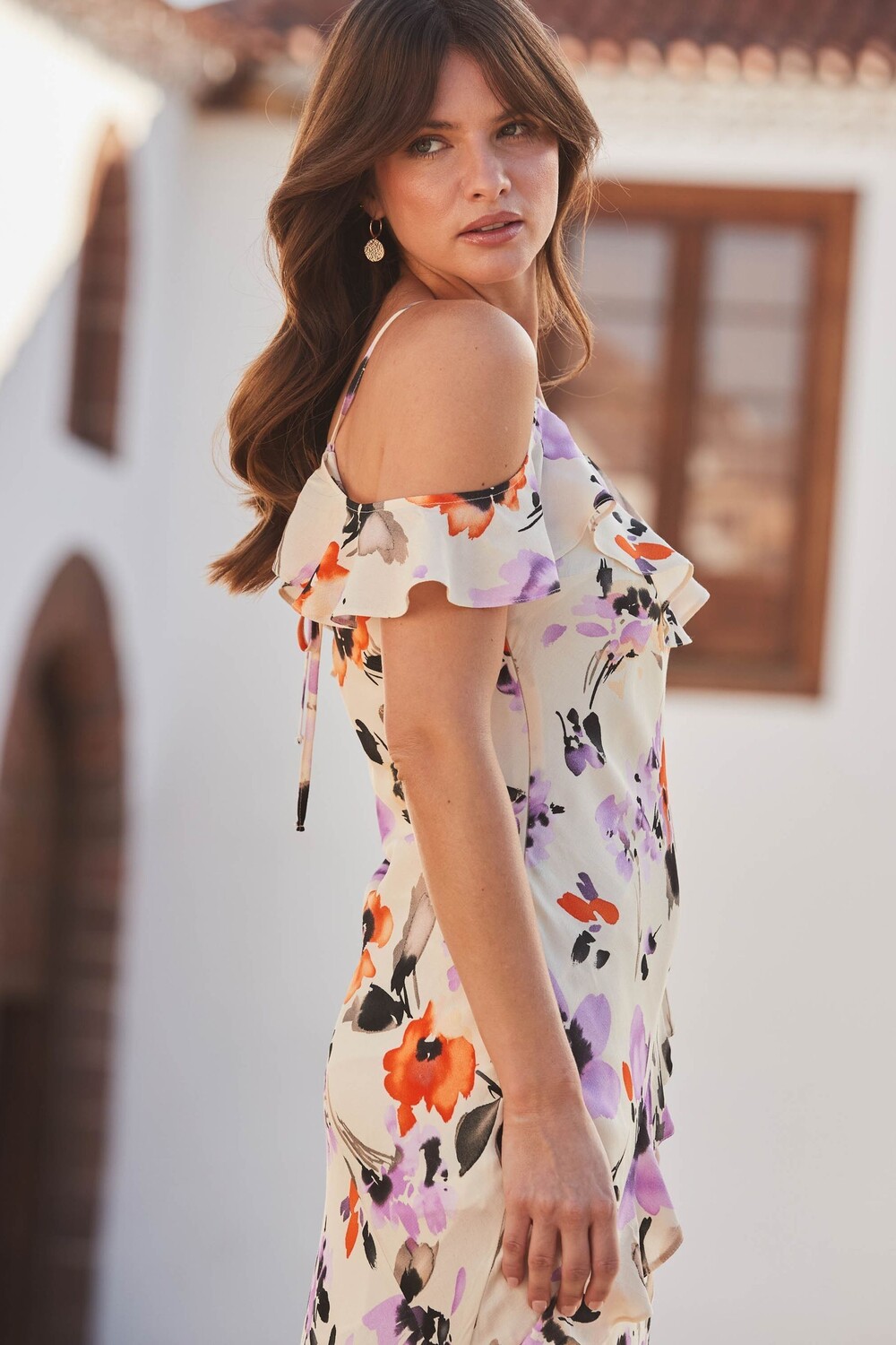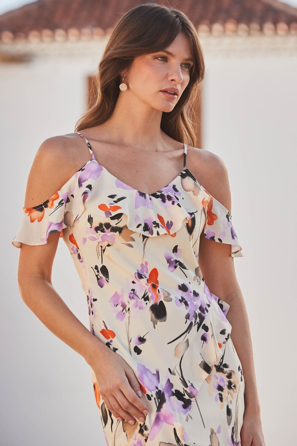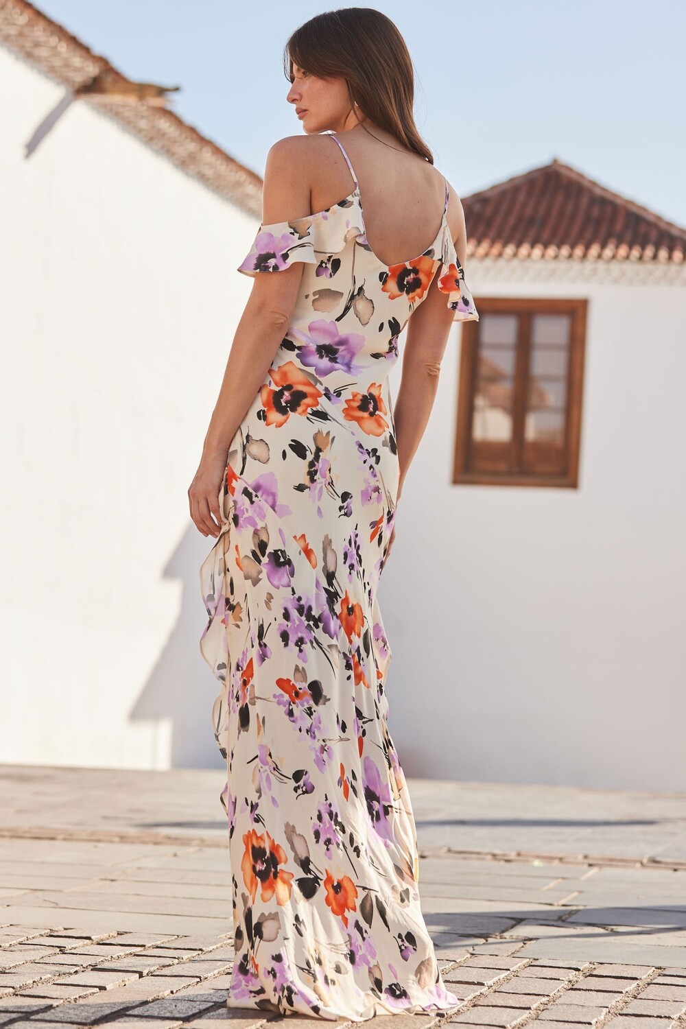 Платье макси со сборками и открытыми плечами Sosandar, бежевый 11 398₽