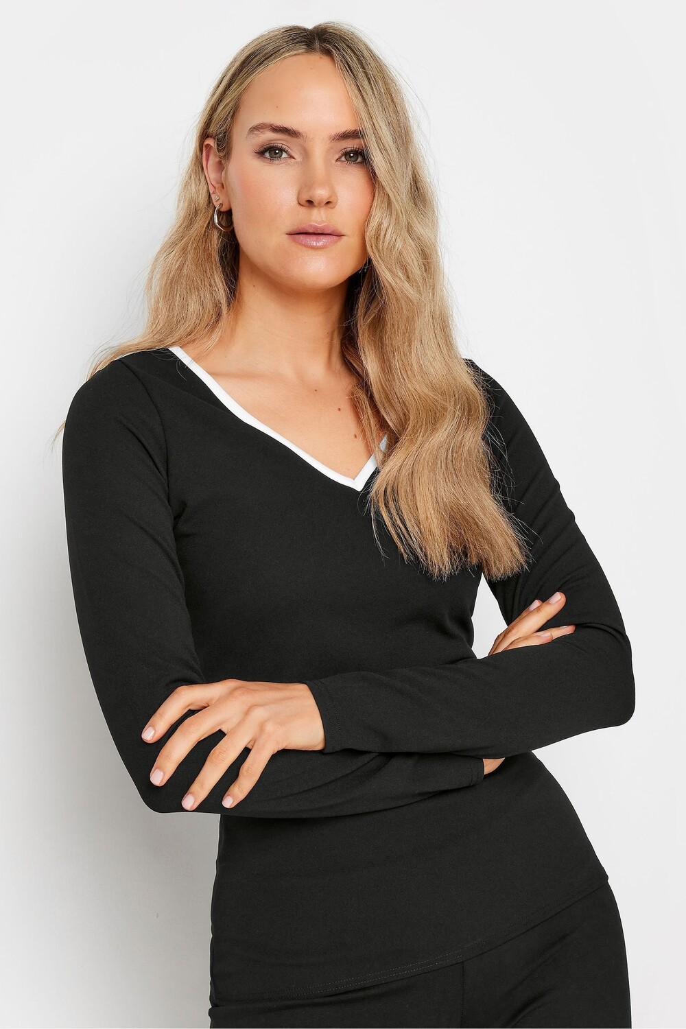 Топ с контрастным v-образным вырезом Long Tall Sally, черный