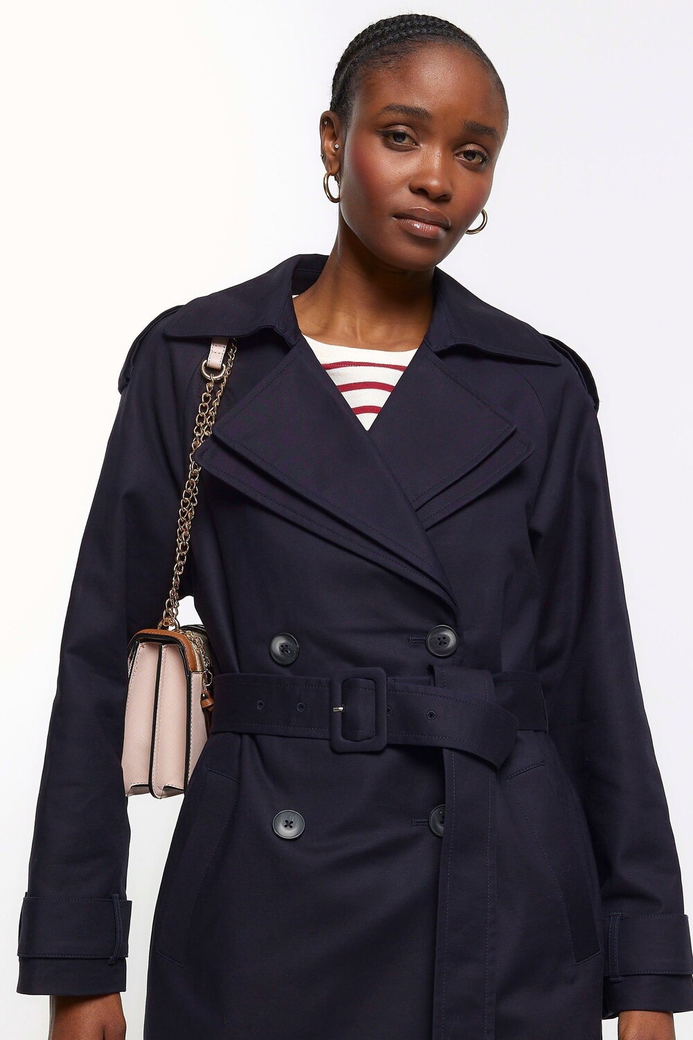 Тренч с двойным воротником и поясом River Island, синий 11 007₽