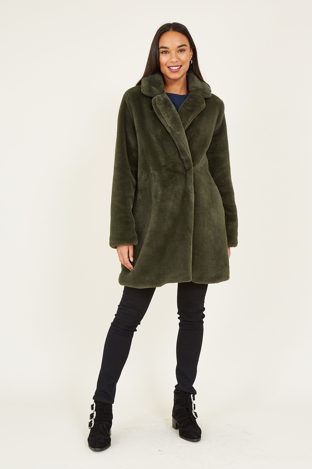Пальто с искусственным мехом Yumi, зеленый 15 983₽