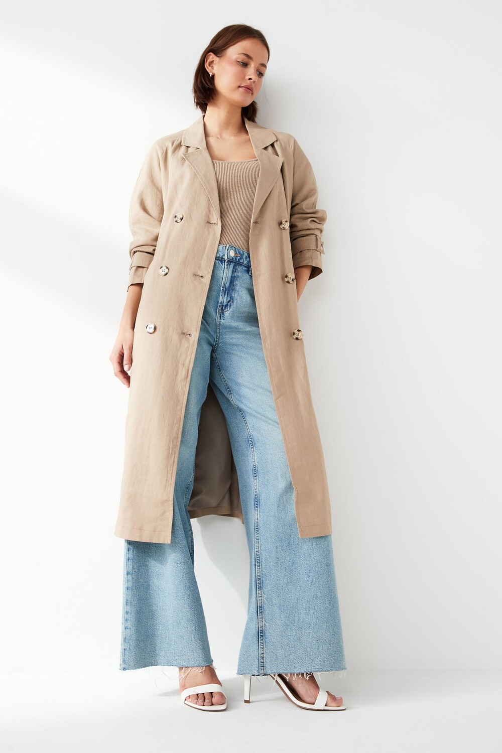 Льняной тренч Jdy, коричневый
