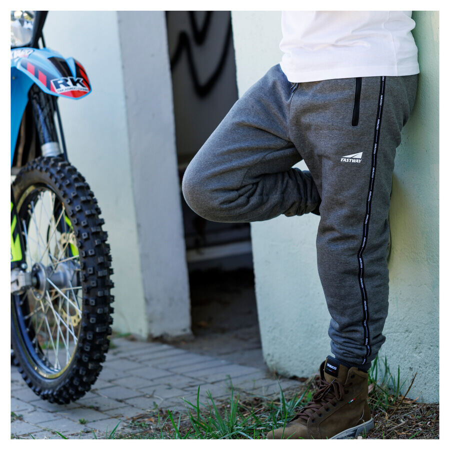 Выглядят как обычные спортивные штаны, но на самом деле это нечто большее. Fastway *T-2209* — настоящий Сертифицированные мотоциклетные штаны спортивного дизайна для бега! С защитой коленей и карманами для защиты бедер, арамидным усилением. Безопасные швы. Тем не менее, Fastway *T-2209* очень повседневный. Удобен благодаря эластичной резинке и шнурку на поясе. И модные полоски по боковым швам.