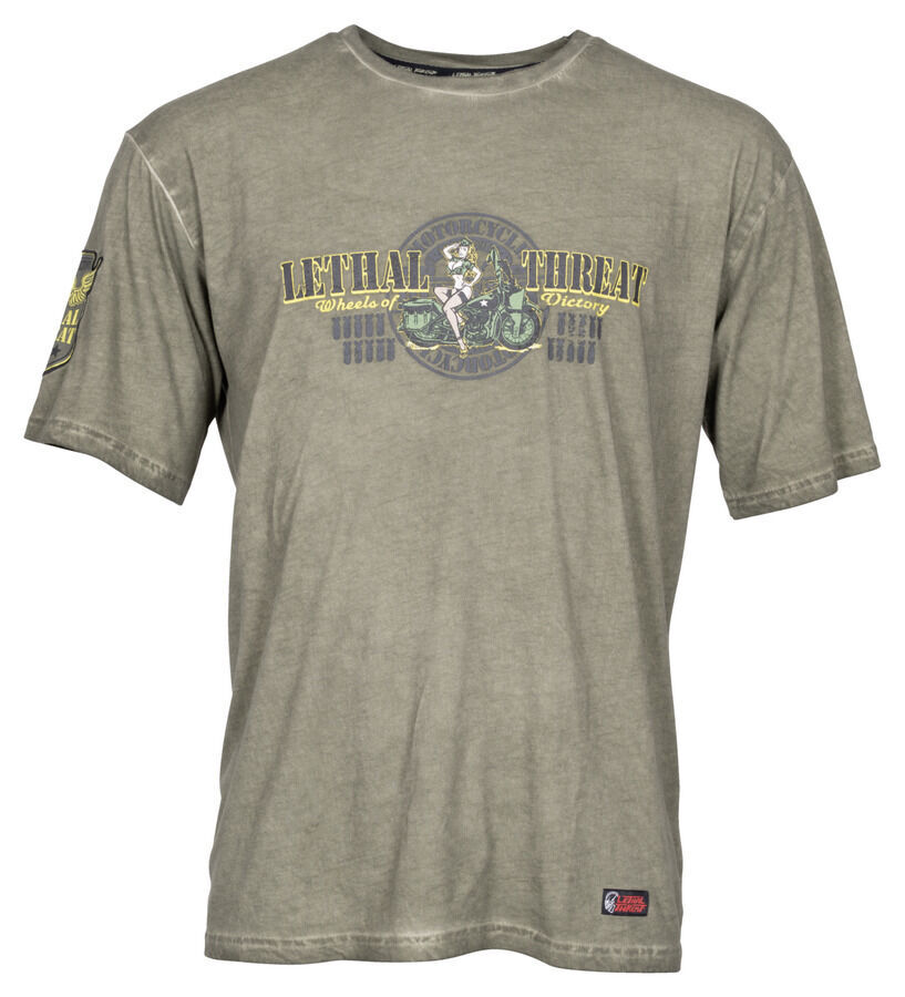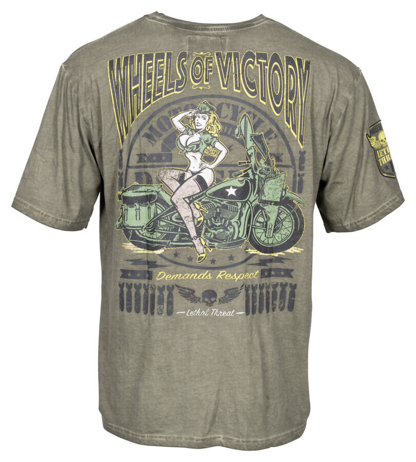 Ваши великолепные ощущения от езды на мотоцикле в новой футболке Lethal Threat *Wheels of Victory* — ваша победа на всем пути! Чистый Хлопок с эффектом стирки – ваш личный летний хит. .