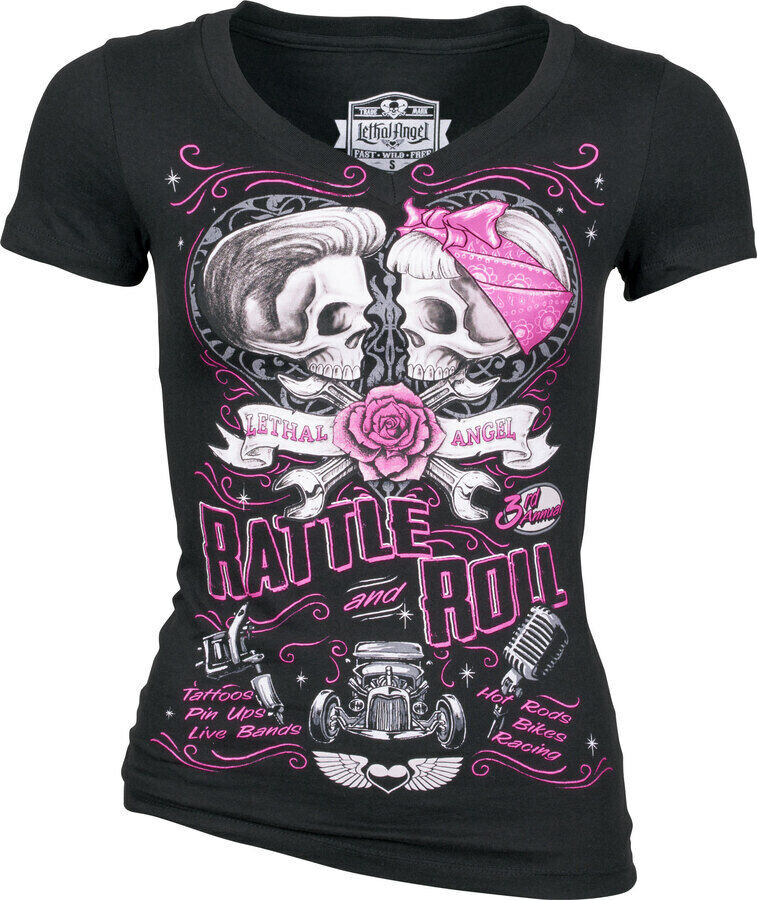 В женской футболке Lethal Angel Rattle & Roll звучит музыка. Вытащите из могил звезд 1950-х и 60-х годов. ,