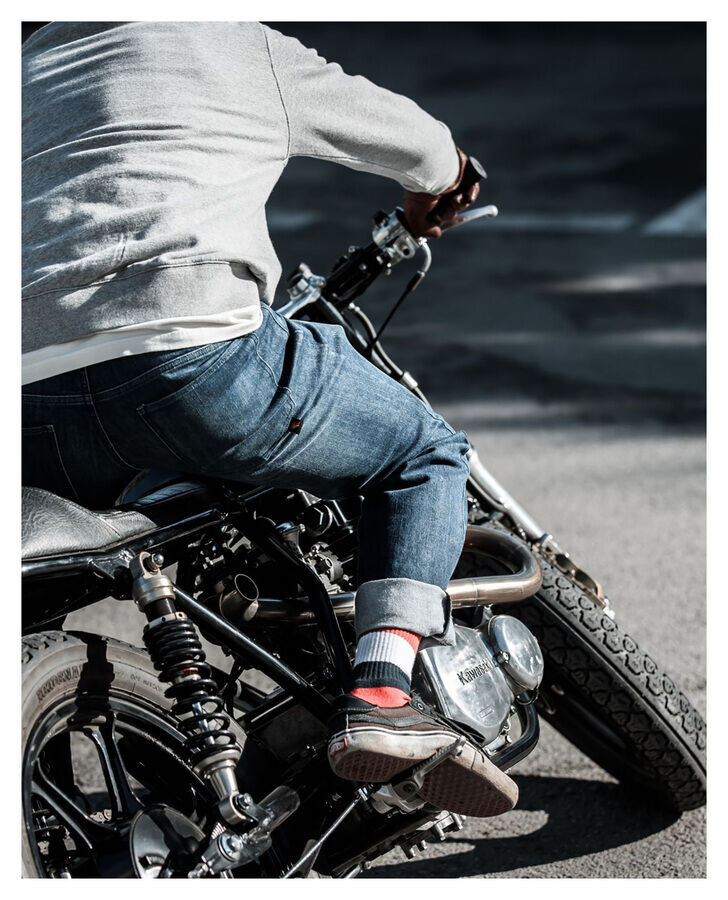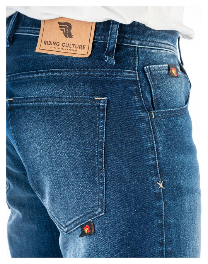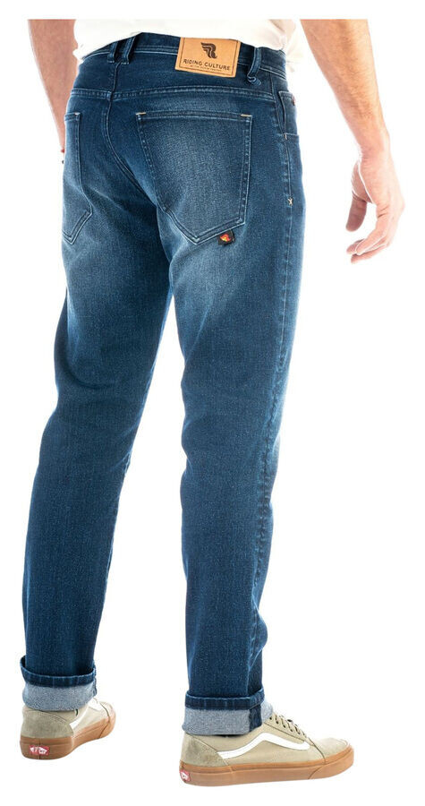Джинсы с «поношенным видом» почему-то всегда популярны. Riding Culture предлагает для вас современные джинсы *Tapered Slim* (зауженные штанины) с пятью карманами. . Поскольку мотоциклетные брюки даже сертифицированы по стандарту AAA, они особенно впечатляют благодаря своему устойчивому к истиранию волокну. который вплетен в прочную джинсовую ткань. Это означает, что *Tapered Slim* может быть изготовлен в один слой и очень удобен в ношении. . С небольшой натяжкой.