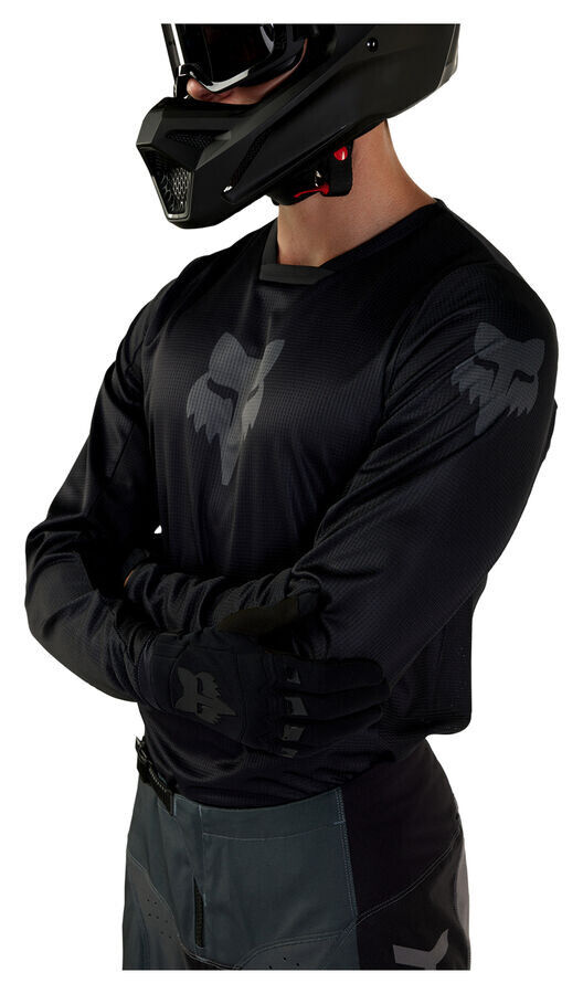 Джерси Fox*180 Blackout* отличается высокими эксплуатационными характеристиками. высококачественный топ для мотокросса. Основная ткань изготовлена из влагоотводящего материала и обеспечивает прохладу. сухой комфорт. Сетчатые вентиляционные панели также обеспечивают расширенную циркуляцию воздуха. Эти панели поддерживают управление влажностью и регулируют температуру тела. а посадка и комфорт дополнительно повышаются за счет сетчатого воротника и манжет. Это обеспечивает Джерси Fox *180 Blackout* более точную и менее тесную посадку, чем аналогичные трикотажные изделия. Благодаря удлиненному сзади низу эта футболка для бездорожья не выскользнет из штанов и станет надежным спутником во время спусков.