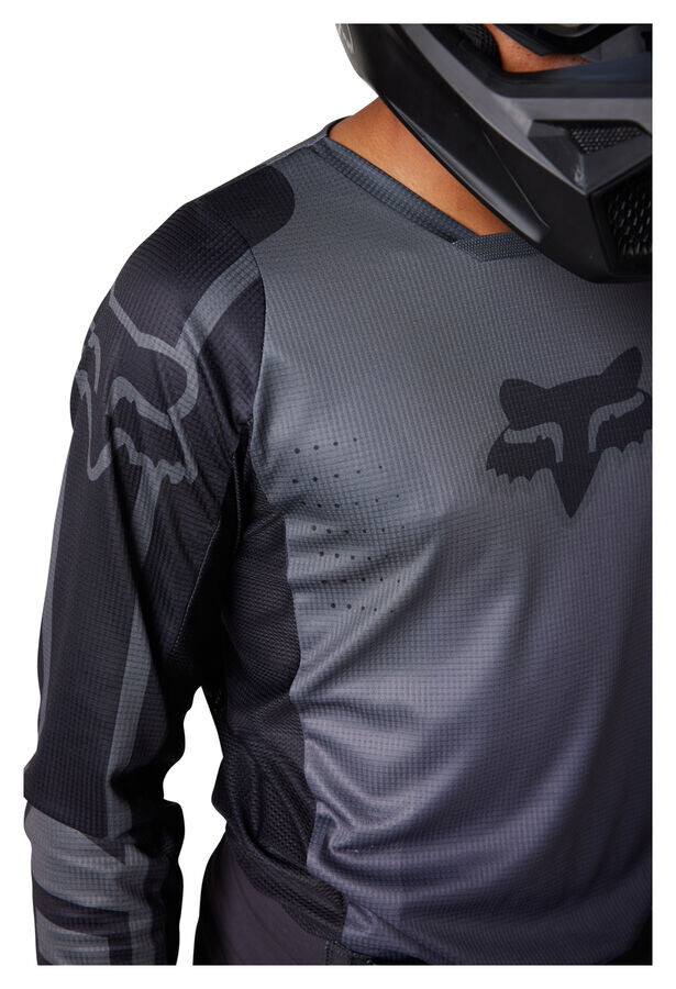 Основная ткань Джерси Fox со звучным названием *180 Leed* выполнена из влагоотводящего материала. . Обеспечивает прохладу и сухость. Сетчатые вентиляционные панели обеспечивают расширенную циркуляцию воздуха. поддерживают управление влажностью и регулируют температуру тела а посадка и комфорт дополнительно повышаются за счет сетчатого воротника и манжет. Благодаря удлиненному сзади низу этот трикотаж для езды по бездорожью не выскользнет из штанов и станет надежным спутником во время спусков. .
