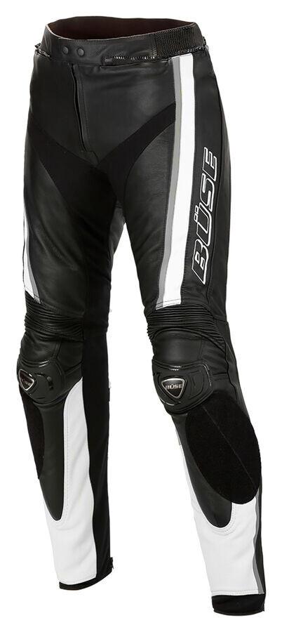 Сильные комбинированные брюки Büse *Mille* для женщин и мужчин из одноименного кожаного костюма-двойки Также можно приобрести отдельно и, конечно же, носить. Может просто с текстильной курткой? В любом случае, мотоциклетные штаны *Mille* в своем абсолютно спортивном дизайне всегда привлекают внимание. . Прибл. Для создания этих брюк Бюзе использовал прочную коровью кожу толщиной 1,2–1,4 мм. И вы можете положиться на это что со временем и благодаря частому ношению он станет все более и более вашей любимой частью.