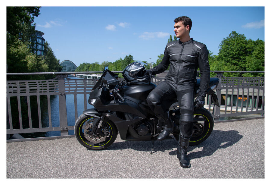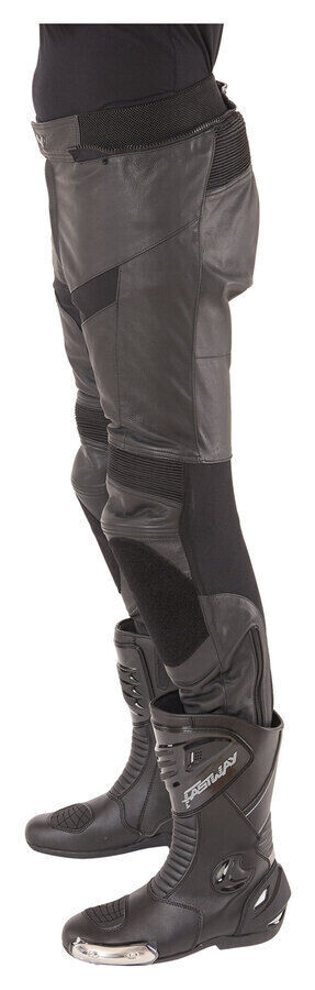Это комбинированные кожаные брюки Fastway *Sport Men 191*. Прекрасное дополнение к одноименному комбинированному пиджаку. Изготовлен из прочной кожи буйвола и большого количества эластичного материала. В результате посадка идеальна, и вы чувствуете себя полностью комфортно во время вождения.