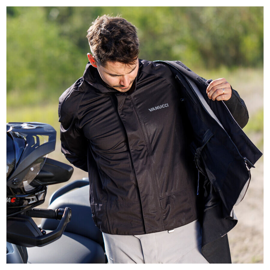 Vanucci *VXR-1* не требует системы подключения, поэтому его можно носить практически под любой длинной мотоциклетной курткой. . Он лежит довольно близко к телу Материал слегка поддается и очень податлив. Плотно прилегающие манжеты рукавов также защищают от неприятных сквозняков.