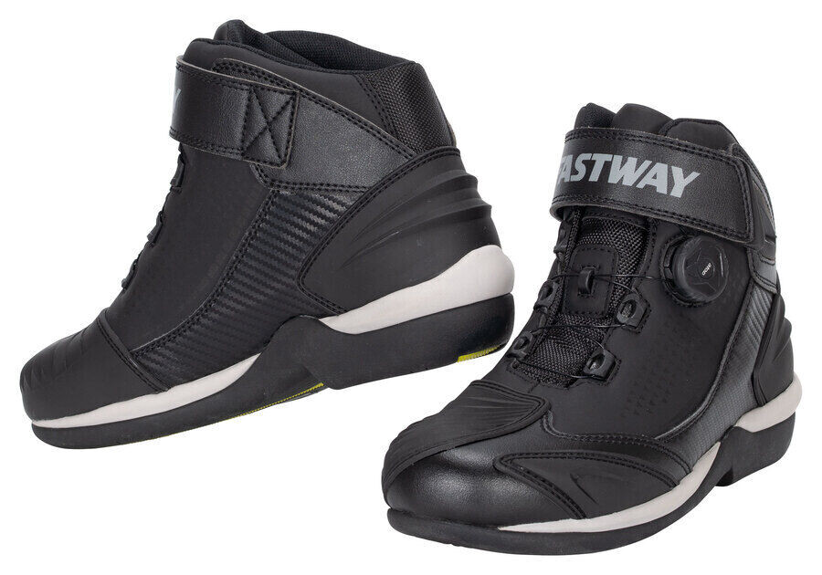 Шнуровка шнурков осталась в прошлом: с короткими ботинками City & Urban Fastway *City 1* вы фактически вращаете «колесо шнуровки». чтобы адаптировать его к вашей ноге. За этим стоит система atop: поворачивая колесо управления сбоку, вы натягиваете и фиксируете шнурки. Чтобы его освободить, достаточно повернуть колесо немного назад (до упора) и вы легко «вылезете» из башмака. Fastway *City 1* тоже надежный. Легкие мотоциклетные ботинки из микрофибры.