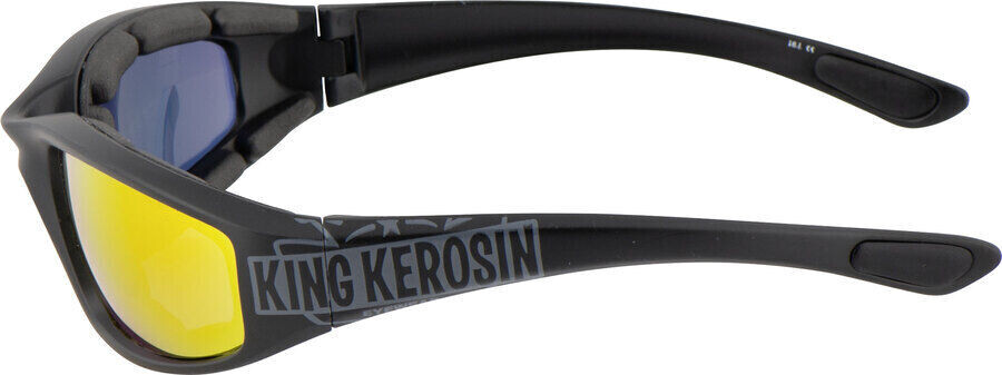 Тонированные линзы в мягкой пластиковой оправе легкие и удобные в ношении. Эти очки King Kerosin защищают глаза благодаря 100% УФ-фильтру и пуленепробиваемости линз (лабораторные испытания). в котором несколько раз моделируется камнепад со скоростью более 200 км/ч). Благодаря спортивной эргономике эта модель оптимально адаптируется к силуэту лица.
