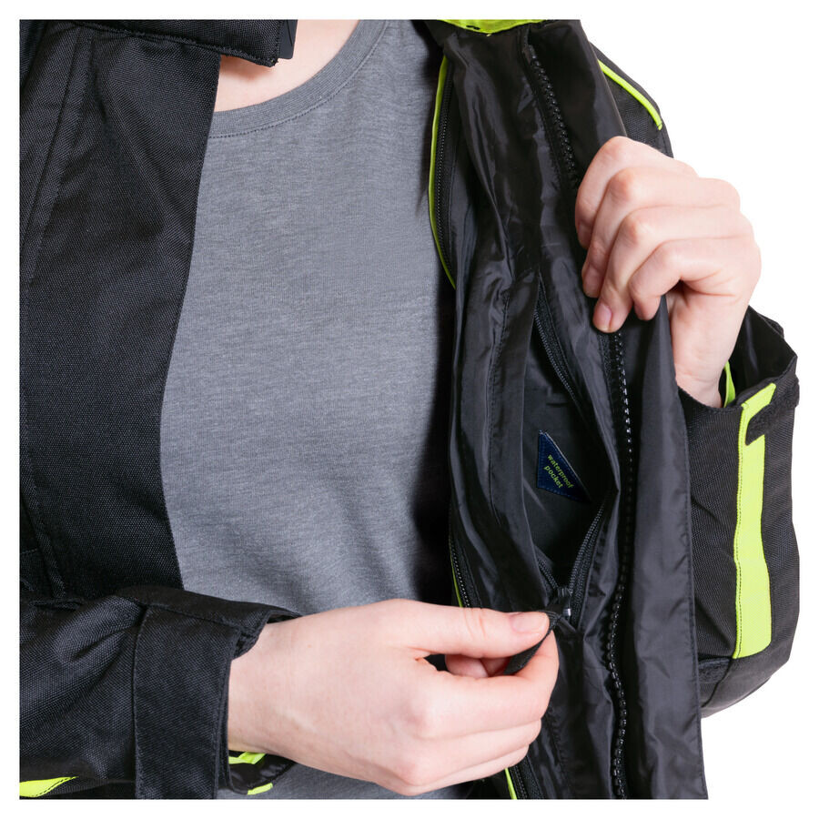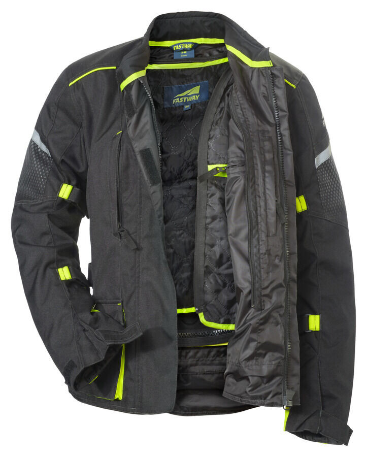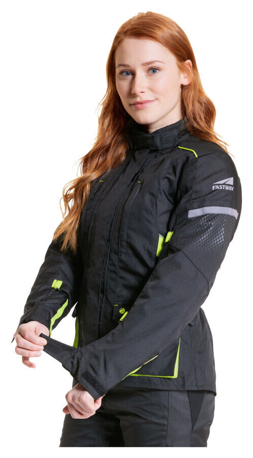 Вам нужна удобная и привлекательная куртка У вас есть женская туристическая куртка с климатической мембраной? Предпочтительно один который не проявляет слабости даже при ежедневном использовании и может сопровождать вас круглый год? Тогда у нас есть текстильная куртка Fastway *Touring Women 211* для вас. . С ней вам хорошо обслуживают во всех отношениях. Хорошая посадка, длинный крой, индивидуальная регулировка. Отличные характеристики: устойчивая к истиранию ткань плотностью 600D и подкладочный ламинат с климатической мембраной — и все это по привлекательной цене. *Touring Women* — это настоящая скоростная дорога. .
