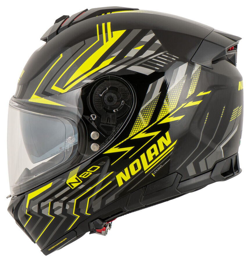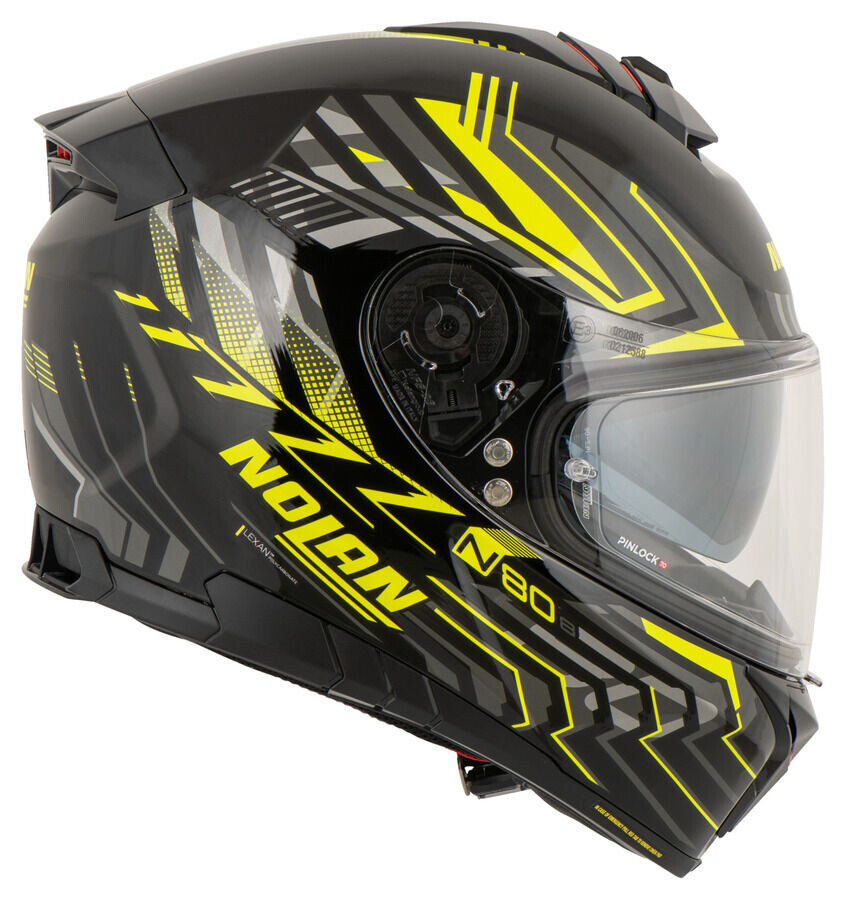 Nolan N80-8 сочетает в себе современный итальянский дизайн и новейшие технологии. Лучшая вентиляция особенно удобный салон, внутренняя подкладка, которую можно регулировать по макушке. Недавно разработанный механизм козырька обеспечивает это. что козырек приближается к окружному уплотнению шлема только на последние миллиметры но тогда лежит точно и равномерно против него. Преимущество Внутренний козырек Pinlock больше не касается уплотнения козырька и поэтому может заметно увеличиться в площади. Nolan *N80-8* также оснащен системой аварийного освобождения Nolan (NERS) для большей безопасности за счет быстрого снятия подщечных подушечек в случае падения. .