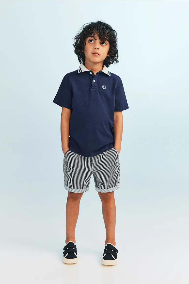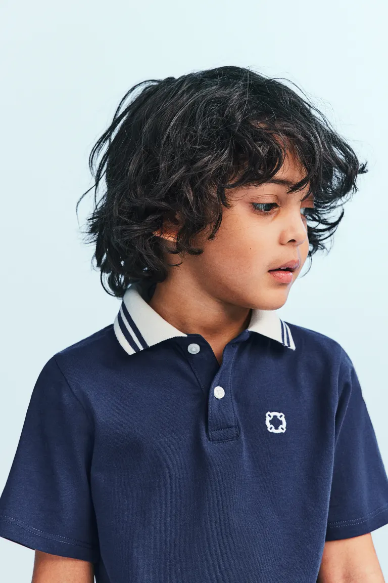 Рубашка-Поло из хлопкового трикотажа H&M, синий
