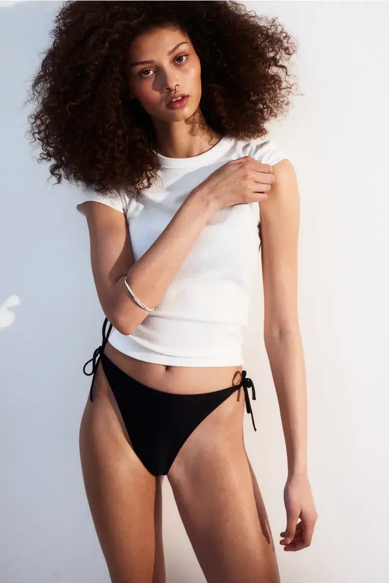 Плавки бикини со стрингами на завязках H&M, черный
