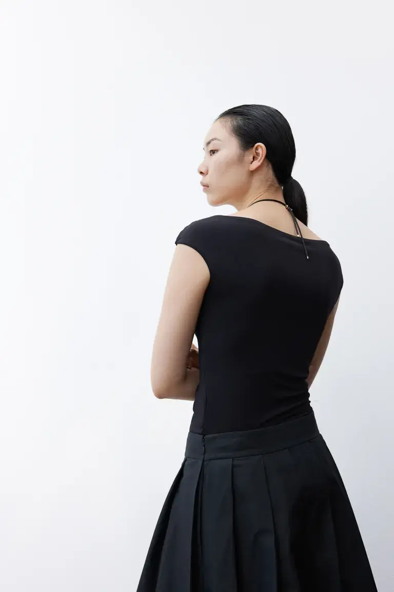 Притягивающая фигуру рубашка из эластичного трикотажа с вырезом «балерина» и рукавами-крылышками. Частичная подкладка.
