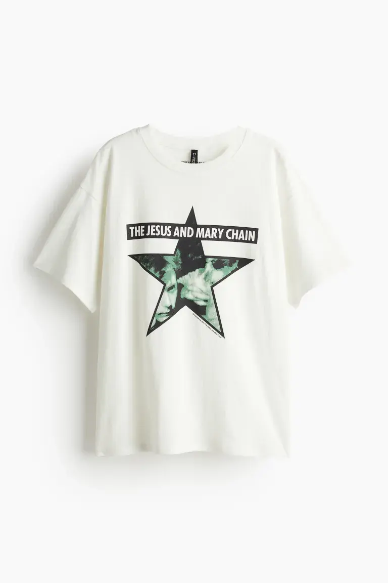 Футболка оверсайз с принтом H&M, белый