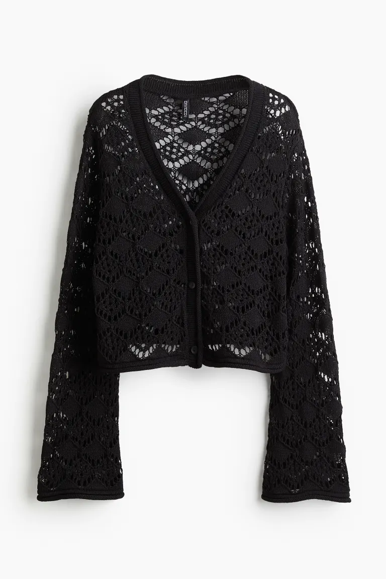 Кардиган вязки "пуантелле" H&M, черный