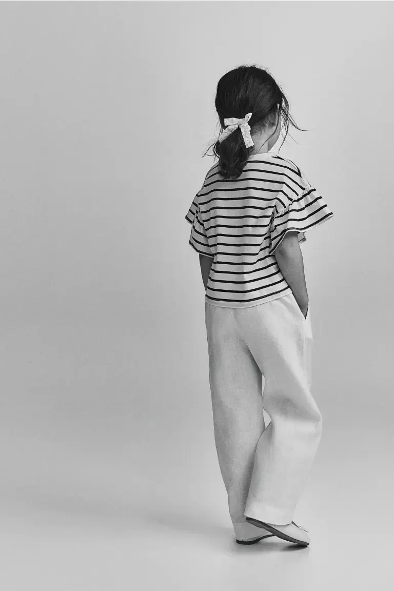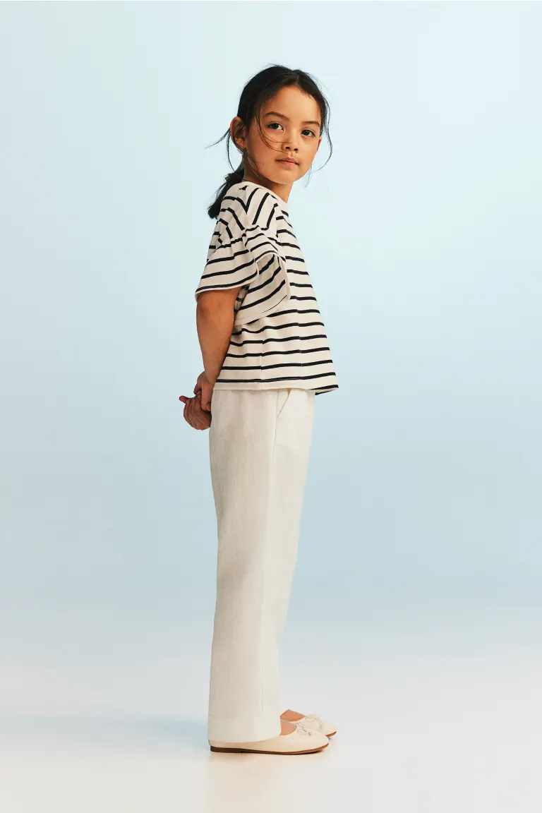 Детский эксклюзив. Брюки из воздушного льна с мягким эластичным поясом и косыми передними карманами.