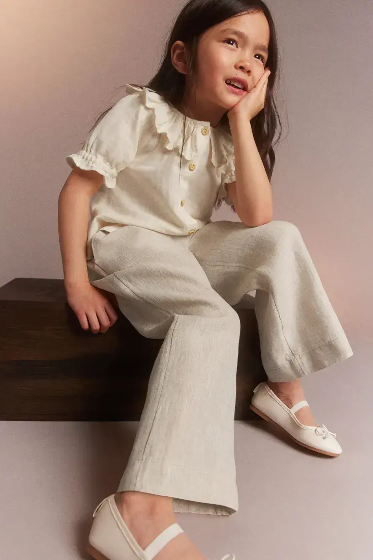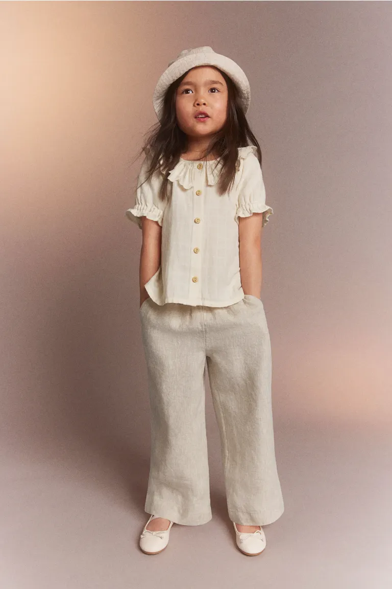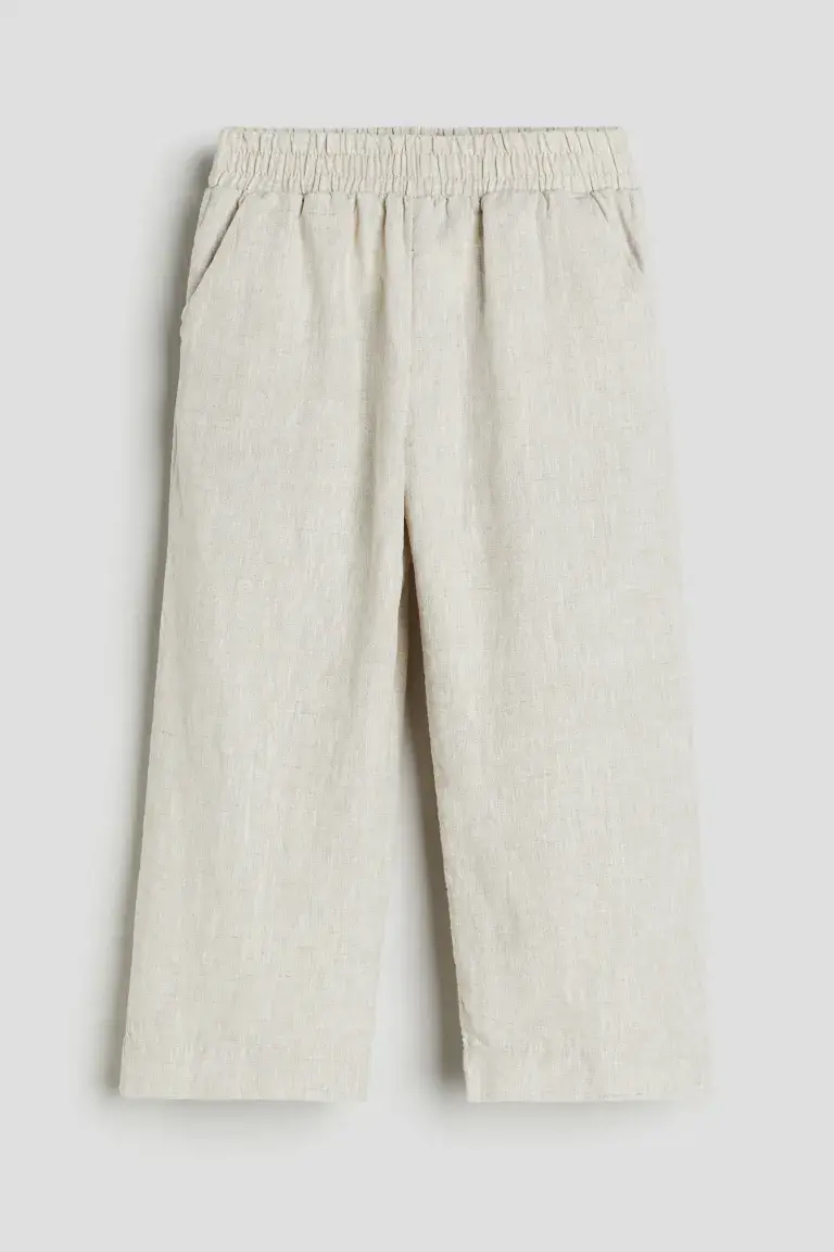 Детский эксклюзив. Брюки из воздушного льна с мягким эластичным поясом и косыми передними карманами.