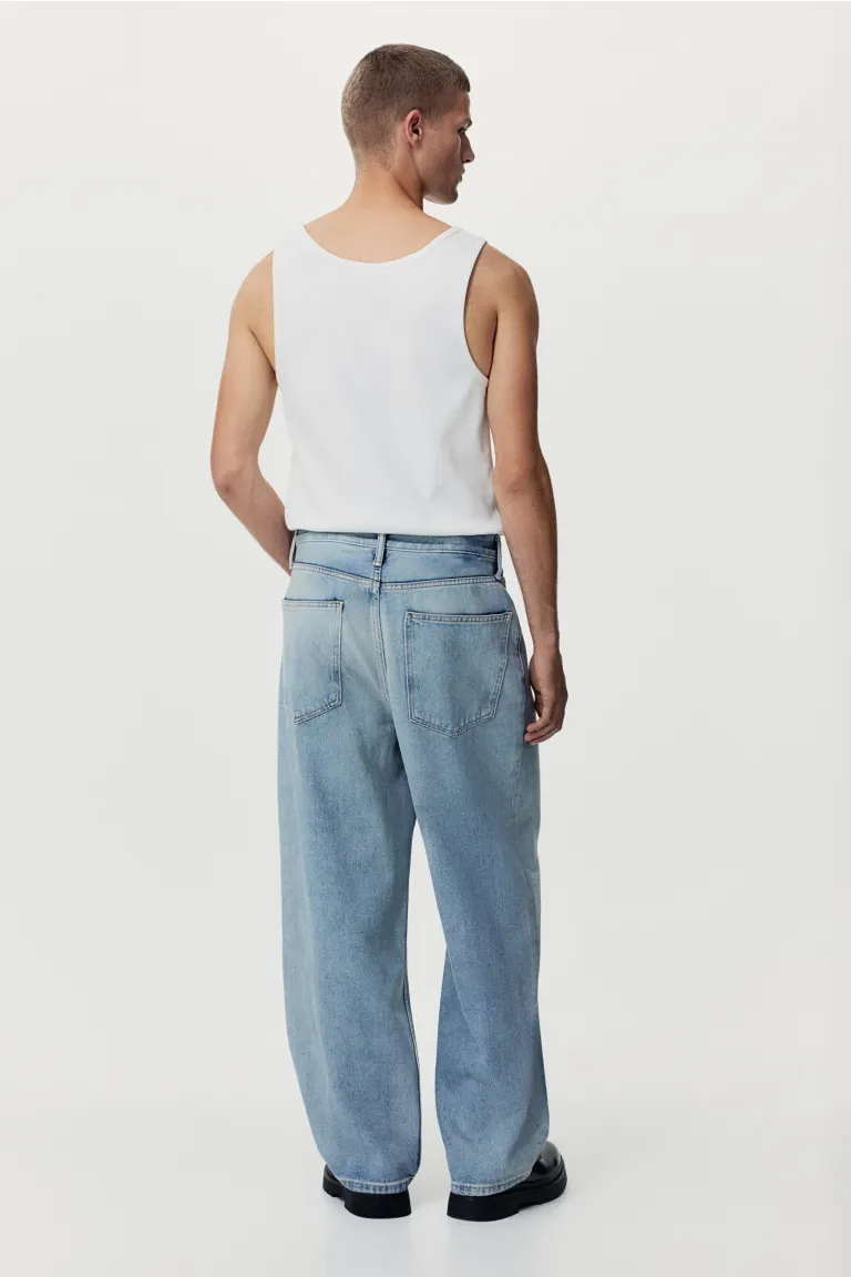 Новые Джинсы с 5 карманами из плотного хлопкового денима. Мешковатый крой от сиденья до низа ног и низкой промежности. Ноги воздушного кроя, очень широкие по всей длине и морщины на лодыжках. Талия стандартной высоты и ширинка на молнии. Джинсовая ткань в абсолютном совершенстве. Размер: Внутренняя часть штанины: длина: 77,0 см (размер 33/32), талия: окружность талии: 91,0 см (размер 33/32) Длина: длинная Высота талии Тип: нормальный пояс Посадка: свободный крой Фильм: мешковатый, объемная штанина, наборный набор