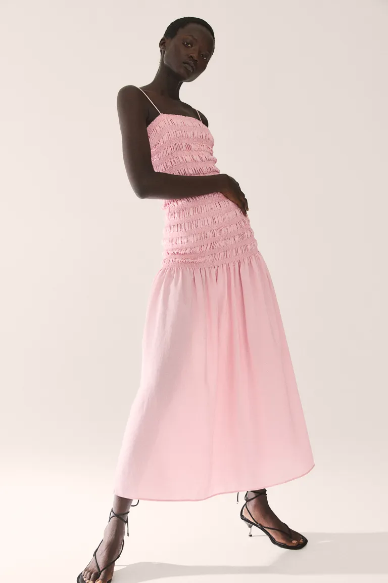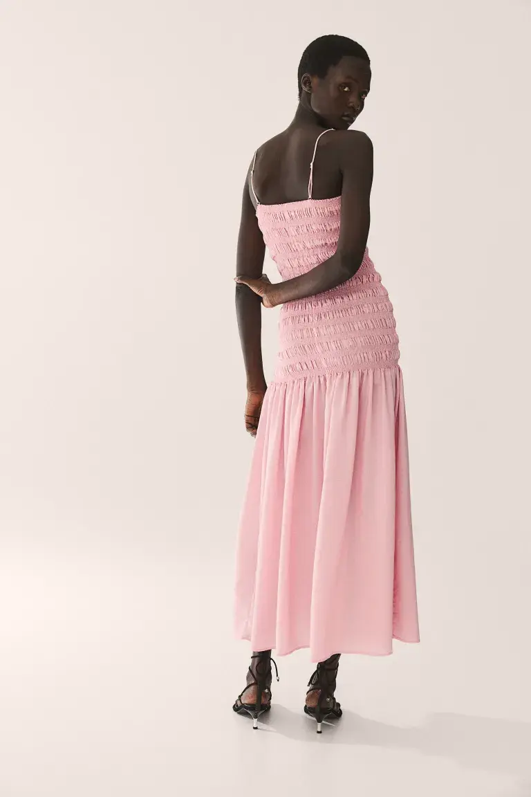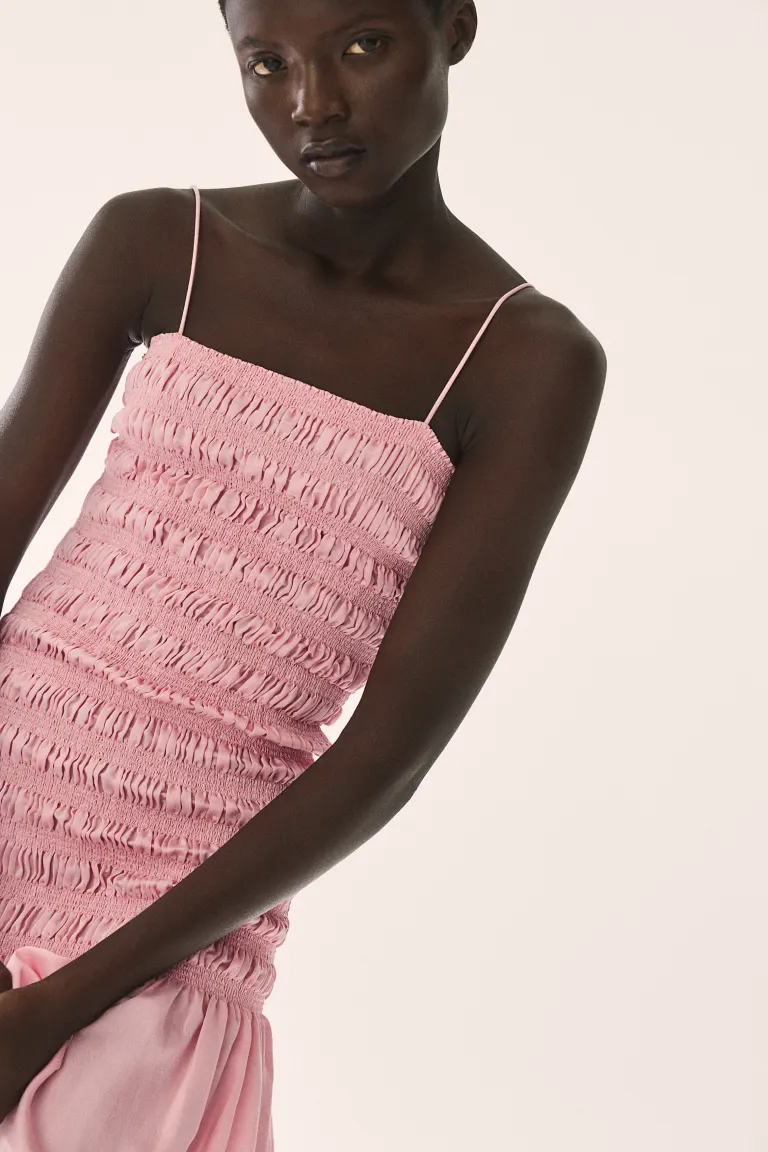 Новинка Длинное платье из тканого материала со сборками по лифу и бедрам. Модель прямого кроя с небольшой воланной отделкой, регулируемыми бретельками-тонками и расклешенной юбкой. Без подкладки. Размер: Спинка: Длина: 117,0 см (размер M) Длина: Длинная Длина рукава: Без рукавов Посадка: Обычная посадка Фильм: присборенный, платье с узким вырезом бретельки Вырез: Квадратный вырез