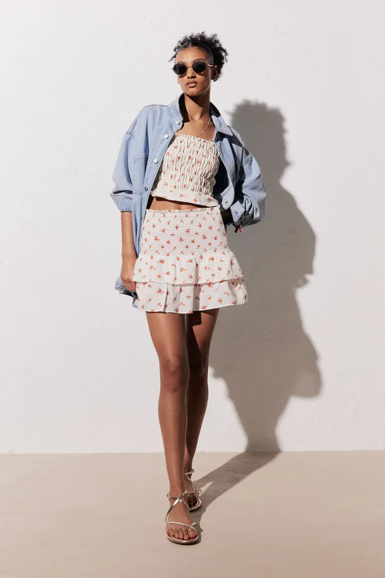 Многоярусная юбка со сборками на поясе H&M, бежевый