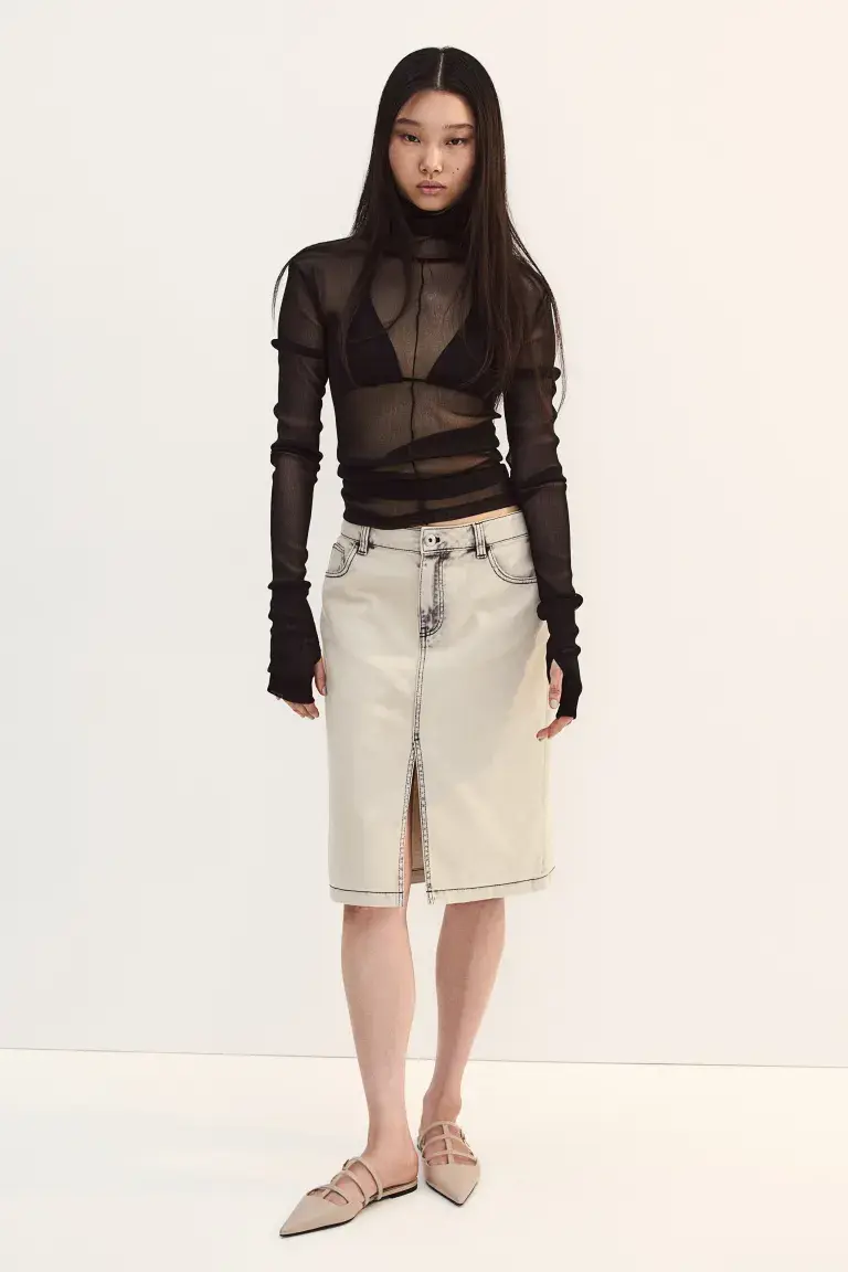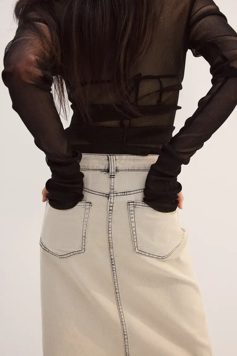Новинка Юбка длиной до колена с 5 карманами из хлопкового твила с высоким разрезом по брючине и поясом нормальной высоты с молнией и пуговицей. Размер: Спинка: длина: 58,5 см (размер 40). , талия: окружность: 85,5 см (размер 40), разрез: ширина отверстия: 25,0 см (размер 40) Длина: до колена Высота талии: нормальная высота талии Посадка: стандартная посадка Стиль : Разрез