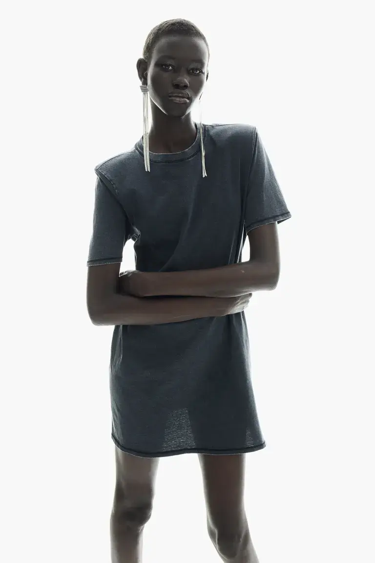 Новинка Короткое платье-футболка свободного кроя из мягкого хлопкового трикотажа с плоскими швами для дополнительного комфорта. Ребристая отделка по вырезу, подплечникам и прямой низ. Размер: Плечо: Ширина: 41,0 см (Размер M), Рукав: Длина: 24,5 см (Размер M), Спина: Длина: 84,0 см ( Размер M) Длина: Короткая Длина рукава: Короткий рукав Посадка: Свободный крой Стиль: Платье-футболка Вырез: Круглый вырез
