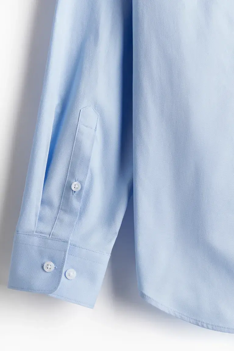 Новинка Хлопковая рубашка с акульим воротником, классической планкой на пуговицах и кокеткой сзади. Длинные рукава с регулируемыми манжетами и пуговицей в разрезе рукавов. Слегка закругленный низ. Slim Fit — это посадка, повторяющая контуры тела и создающая стройный силуэт. Размер: Рукав: Длина: 68,5 см (размер L), Плечо: Ширина: 50,5 см (размер L), Спина: Длина: 79,0 см (размер L). Длина: стандартная длина Длина рукава: длинный рукав Посадка: приталенная Воротник: воротник с вырезом