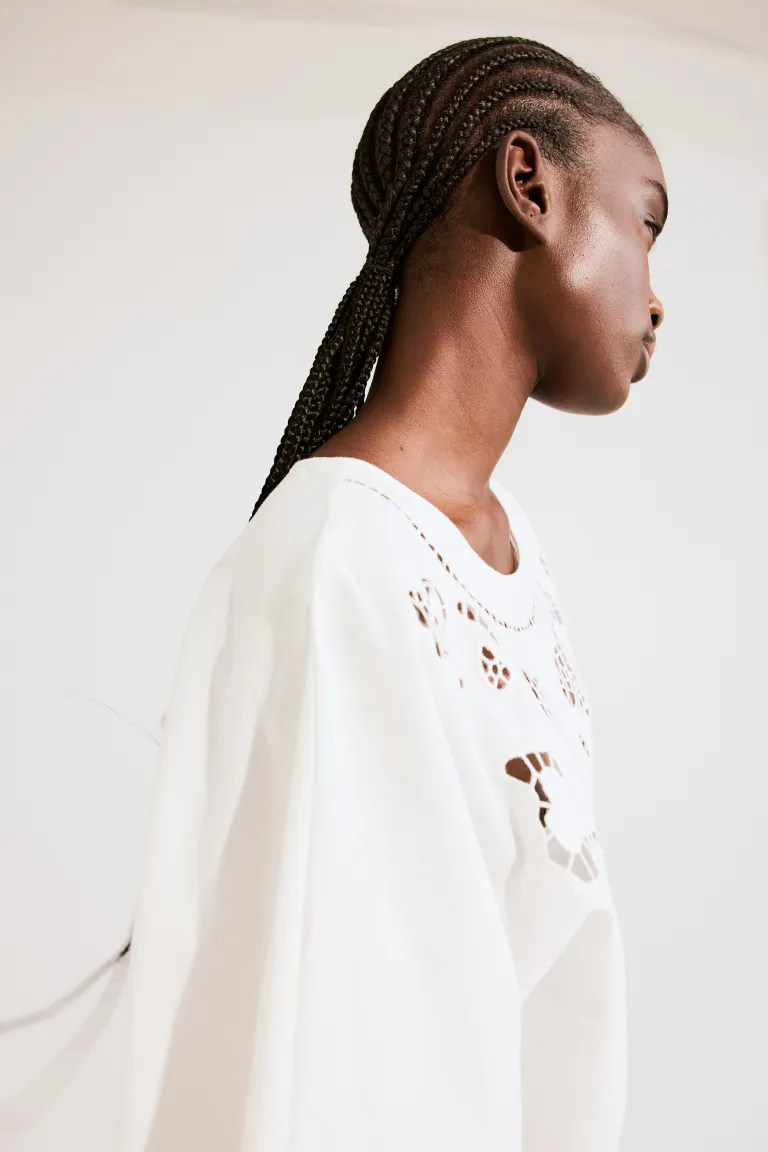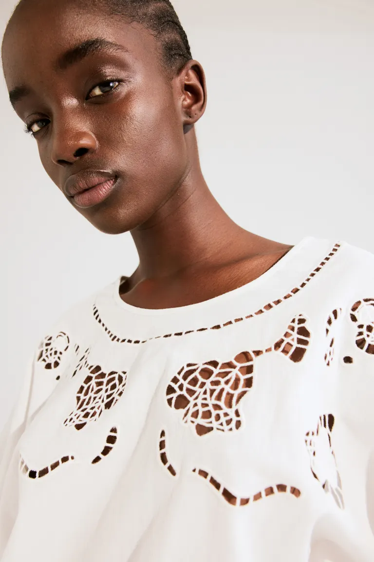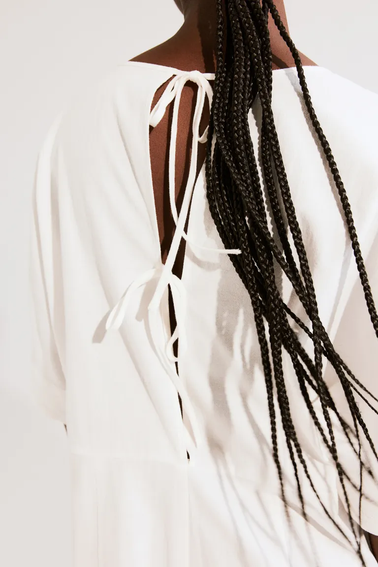 Короткое платье из смеси хлопка и вискозы с английской вышивкой спереди. Круглый вырез горловины и вырез на узких завязках на шее. Короткие широкие рукава и вытачки сзади на талии создают привлекательный силуэт. Без подкладки. Размер: Рукав: Длина: 43,0 см (размер M), Спинка: Длина: 89,0 см (размер M) Длина: Короткая Длина рукава: Короткий рукав Посадка: Обычный крой Вырез: круглый вырез