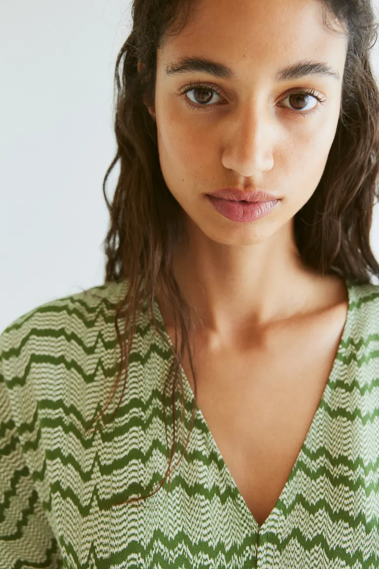 Платье с v-образным вырезом H&M, зеленый