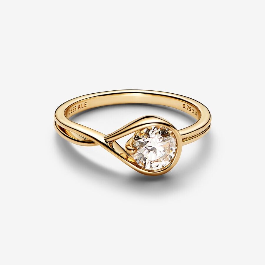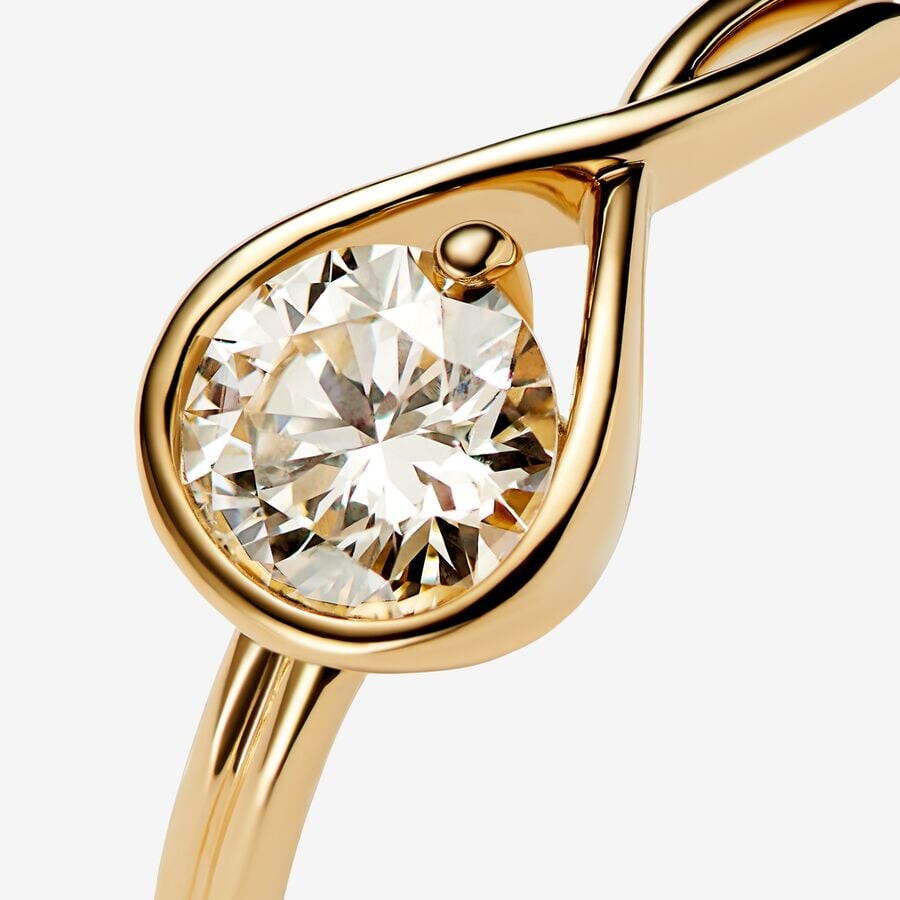 Кольцо из 14-каратного золота с выращенным в лаборатории бриллиантом весом 0,75 карат. Красивое заявление о силе и возможностях или простое, но красноречивое признание в любви. Это кольцо со сверкающим круглым бриллиантом превосходной огранки имеет современную оправу "Бесконечность". Его можно носить как отдельно, так и в сочетании с другими кольцами из коллекции Pandora Infinite. Каждый бриллиант, выращенный в лаборатории Pandora, проходит процедуру улучшения цвета после роста, называемую отжигом. Pandora следует стандартам Всемирной ювелирной конфедерации (CIBJO), чтобы гарантировать, что огранка, цвет, чистота и вес в каратах выращенных в лаборатории бриллиантов всегда соответствуют целевым показателям. Все камни весом 0,50 карат и выше также сертифицированы Международным геммологическим институтом (IGI).