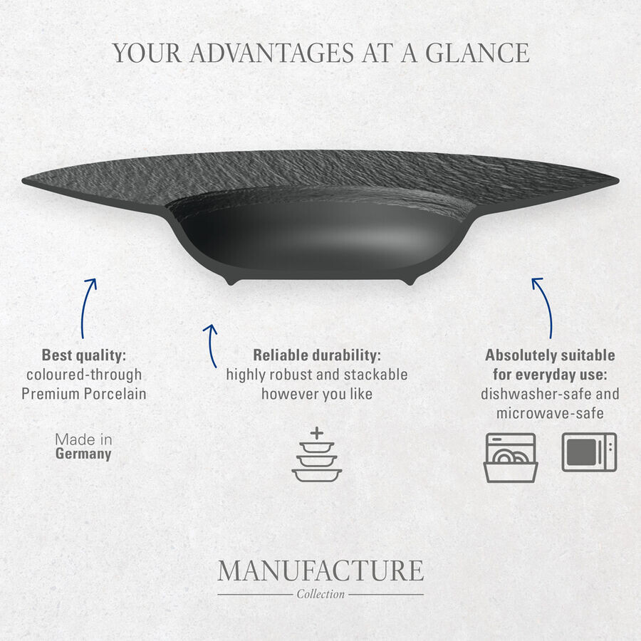 Натуральная, оригинальная и особенная: Это Manufacture Rock. Стиль ручной работы в виде матового фарфора с эффектом сланца делает коллекцию особенной. Универсальная миска для супов. Создайте особенные моменты наслаждения.