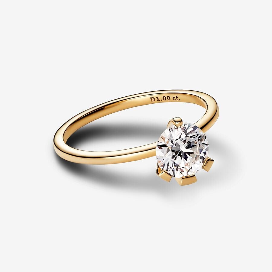 Сияйте в кольце Pandora Nova из 14-каратного золота с бриллиантом, выращенным в лаборатории. Вдохновленное иллюзией захвата и удержания драгоценного фрагмента света, это кольцо из 14-каратного золота демонстрирует бриллиант круглой превосходной огранки весом 1,00 карат. Уникальная асимметричная оправа открывает камень свету для максимального сияния. Символ уникального света внутри каждого из нас, это привлекательное кольцо с бриллиантом, - вещь, которую вы будете носить и ценить долгие годы. Pandora следует стандартам Всемирной ювелирной конфедерации (CIBJO), чтобы гарантировать, что огранка, цвет, чистота и вес в каратах выращенного в лаборатории бриллианта всегда соответствуют или превышают обещанный уровень. Все камни весом 0,50 карат и выше также сертифицированы Международным геммологическим институтом (IGI).
