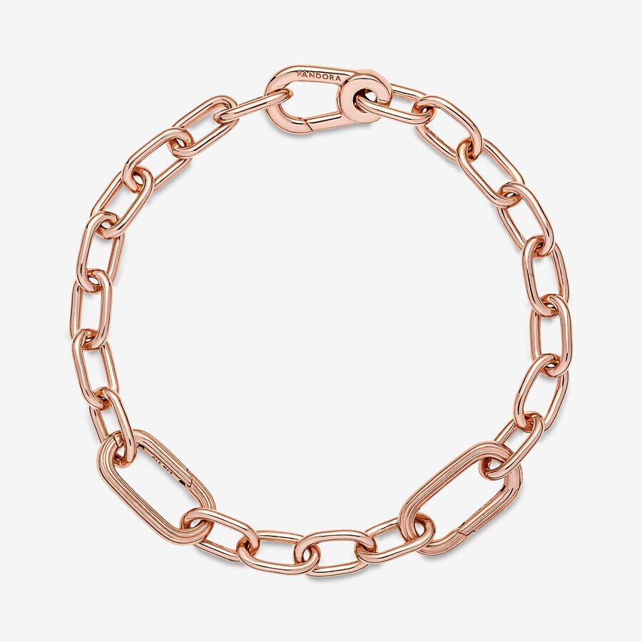 Этот браслет-цепочка Pandora ME, покрытый 14-каратным розовым золотом, с бесконечными возможностями для создания стиля. Дизайн включает в себя два открывающихся звена с рифлеными поверхностями, которые отделяют их друг от друга, - группу из четырех звеньев между каждым открывающимся звеном и застежкой-карабином. Сначала настройте браслет под себя: четыре звена можно заменить на одно стильное двойное звено или одно стильное звено - сохраните первоначальную длину или отрегулируйте ее по своему вкусу. Пожалуйста, обратите внимание, что это изделие совместимо только с ювелирными изделиями-шармами Pandora ME и не подойдет к другим коллекциям Pandora.