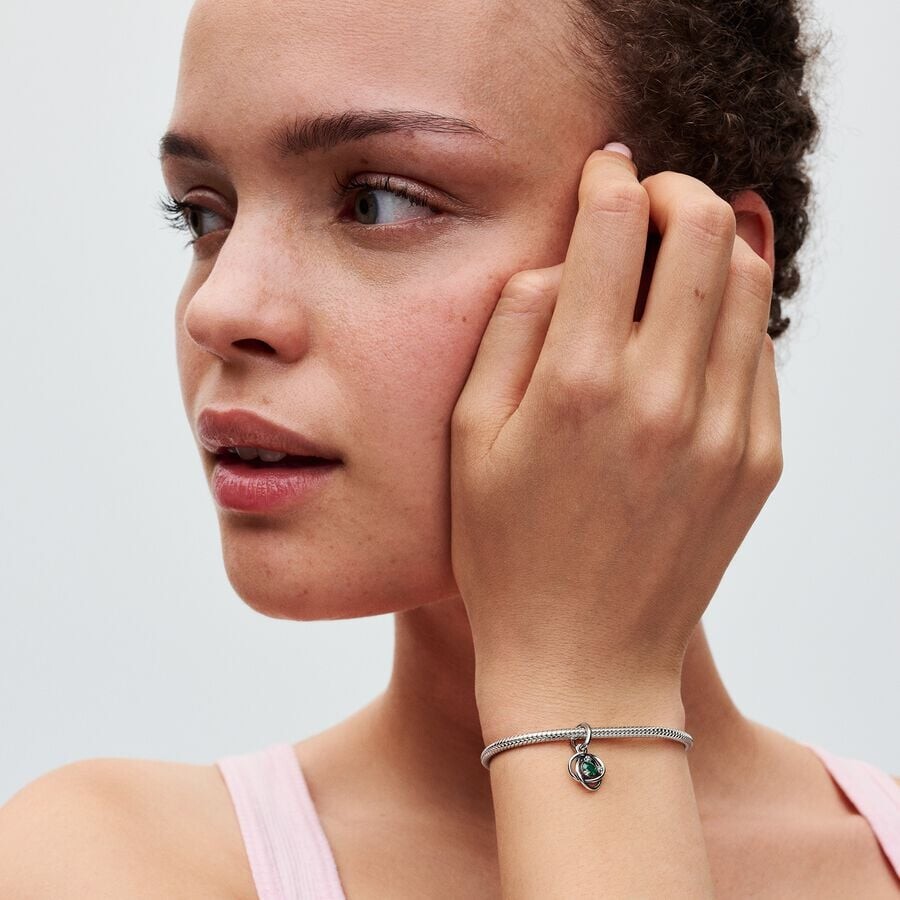Этот замысловатый подвесной шарм в виде зеленого круга вечности станет незаменимым украшением в виде бесконечности в вашей коллекции Pandora Moments. Изготовленное из блестящего серебра 925 пробы, оно украшено ажурной бесконечной тесьмой, украшенной центральным зеленым искусственным кристаллом, элегантно окруженным тремя прозрачными фианитами. Замысловатый дизайн символизирует вечность и придает изделию дополнительный смысл. Украсьте свой браслет этим вневременным украшением или подарите его как символ вечной связи.