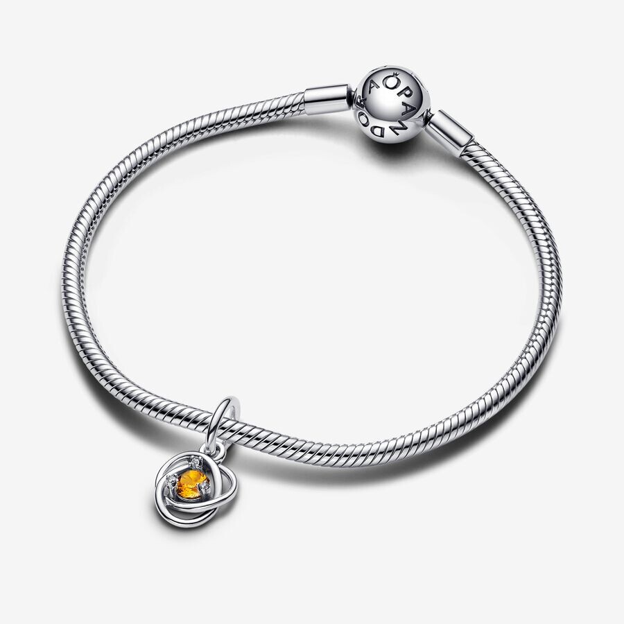 Эта замысловатая подвеска-подвеска Honey Eternity Circle станет незаменимым украшением бесконечности в вашей коллекции Pandora Moments. Изготовленное из блестящего серебра 925 пробы, оно украшено ажурной бесконечной тесьмой, украшенной центральным искусственным кристаллом медового цвета, элегантно окруженным тремя прозрачными фианитами. Замысловатый дизайн символизирует вечность и придает изделию дополнительный смысл. Улучшите свой браслет с помощью этого важного предмета или подарите его как символ вечной связи.