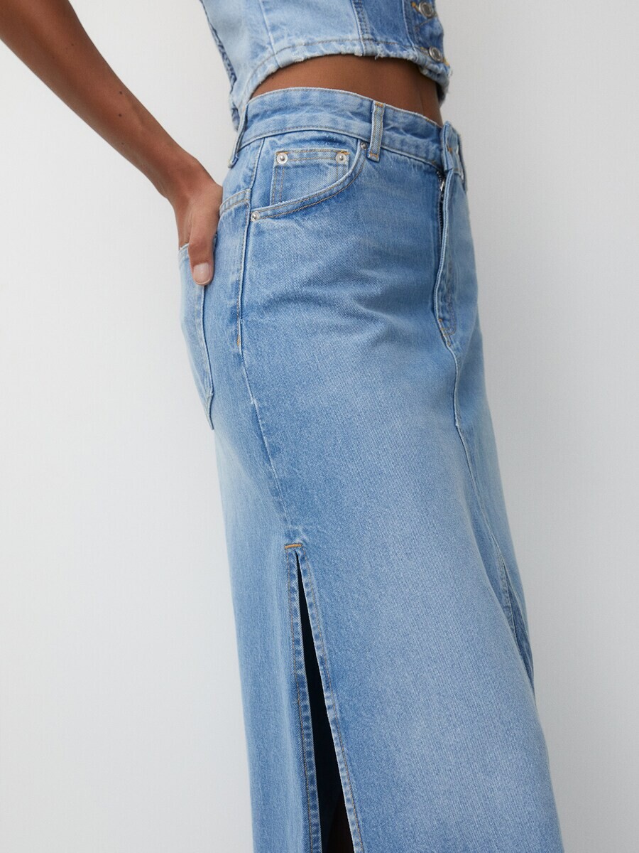 Юбка Pull&Bear, синий деним/голубой 4 358₽