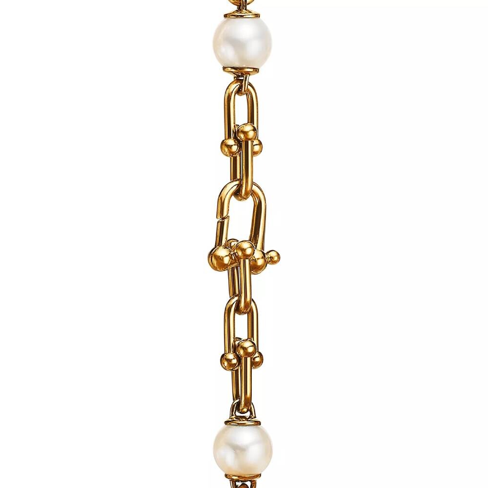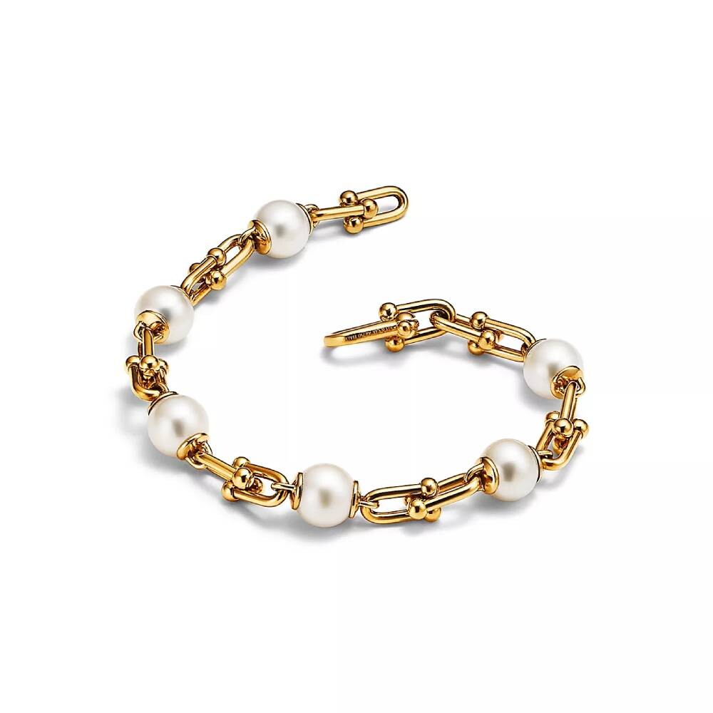 Tiffany HardWear - это выражение преобразующей силы любви. Вдохновленный типичным браслетом 1962 года, найденным в архивах Дома, HardWear воплощает в себе непреходящую стойкость и раскованный дух. Этот браслет из 18-каратного желтого золота украшен фирменными звеньями коллекции с пресноводным жемчугом - поразительной игрой текстур и форм. Добавьте этот современный взгляд на украшения из жемчуга в свой любимый браслет.