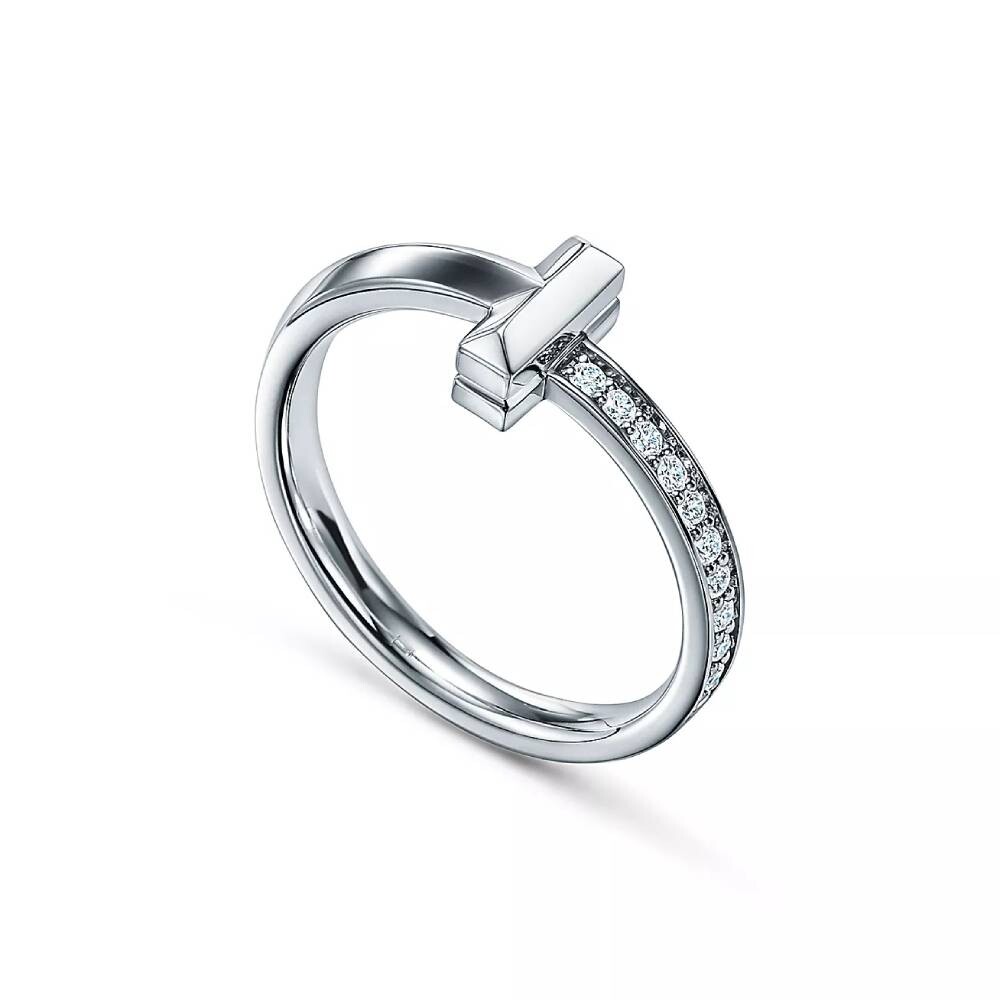 Бриллиантовое паве освещает одну сторону этого кольца, придавая дизайну поразительное сияние. Новое изобретение символа Tiffany, модели Tiffany T1 олицетворяют индивидуальную силу и вечную мощь, нося их снаружи, чтобы выразить то, что скрыто внутри. Сочетайте это кольцо с другими моделями Tiffany из 18-каратного белого золота или сочетайте разные металлы, чтобы создать эффектный образ.