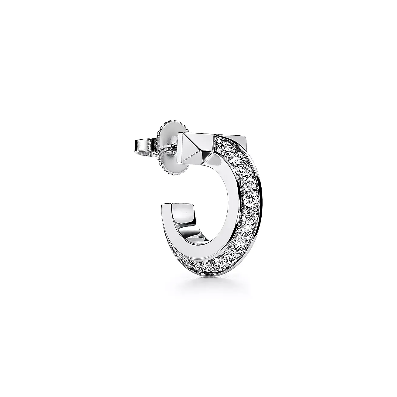 Украшения Tiffany T1 — новый взгляд на культовую коллекцию Tiffany T: яркие профили и смелые детали. Серьги-кольца выполнены с вниманием к деталям из белого золота 18 карат и отличаются скошенной кромкой, подчеркнутой бриллиантами круглой огранки. Носите их отдельно для создания великолепного эффектного образа или создайте необычный образ в сочетании с пуссетами.