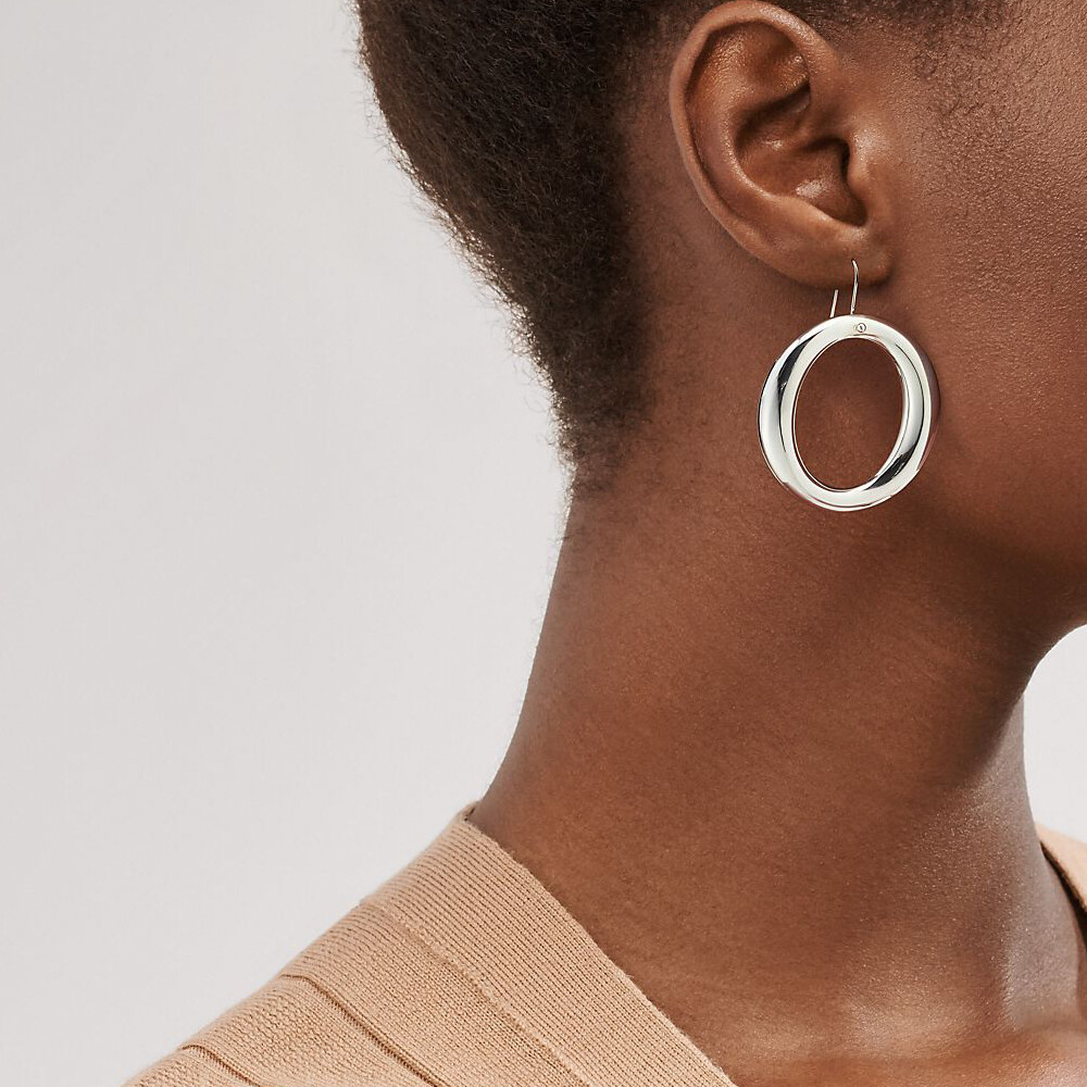 Эллиптическая форма Перетти представляет собой интригующую фигуру. Серьги-крючки из стерлингового серебра.