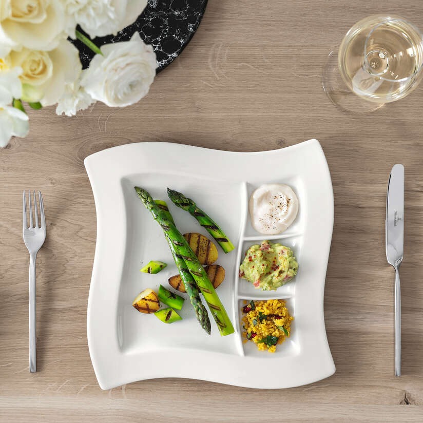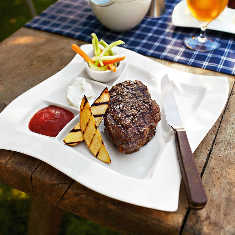 Универсальное применение: Благодаря размеру 27 x 27 x 2,5 см тарелка для гриля идеально подходит для подачи мяса на гриле вместе с соусами.