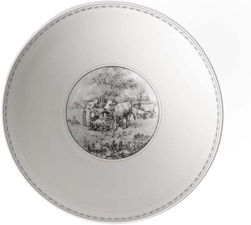 С помощью коллекции Audun бренд Villeroy & Boch изящно соединяет прошлое, настоящее и будущее, вдохновляясь гравюрами на меди, созданными на рубеже прошлого века. Пасторальные сцены в чёрно-белом цвете дополнены акцентной рамкой и подробными принтами. Коллекция Audun состоит из четырёх стилей, таких как Ferme, Promenade, Fleur и Chasse. Все эти стили придадут деревенский колорит любому обеденному столу. Эта миска является частью коллекции Audun Promenade в классическом стиле и идеально подходит для подачи гарниров или фруктов.