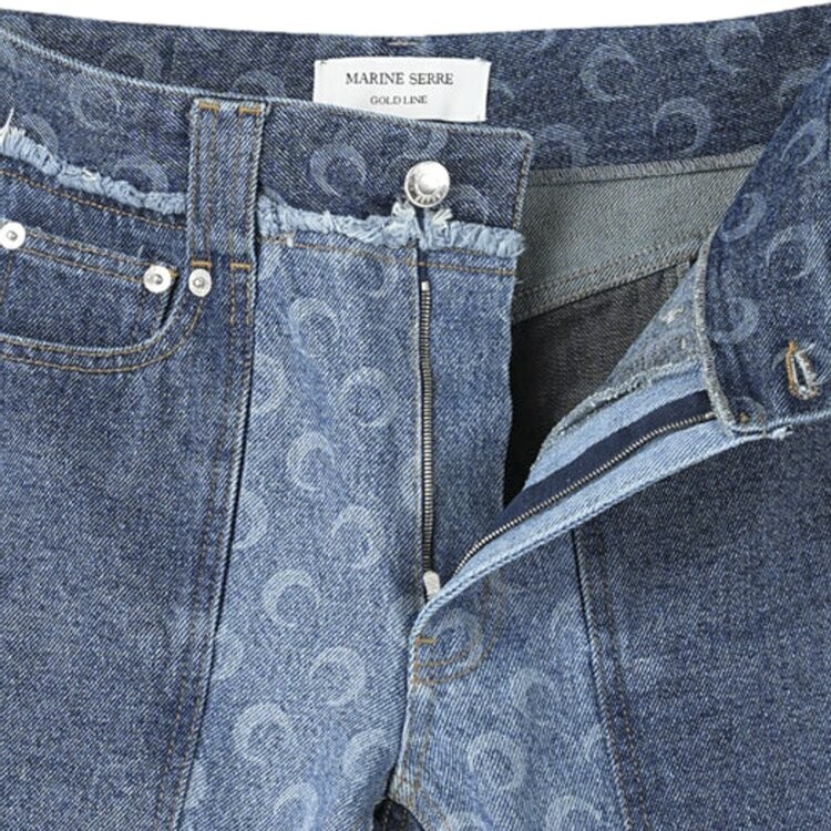 Брюки Marine Serre Regenerated Denim Straight Leg Pants, синий 96 974₽