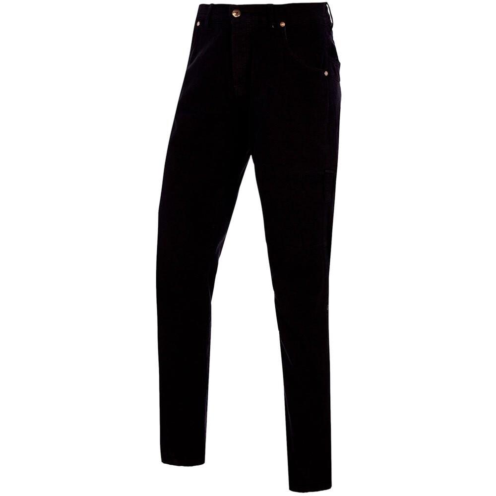 Фиксированная талия. Шлевки. Застежка-молния с клапаном на пуговицы. Колени предварительной формы. Боковые карманы. Горизонтальный карман на штанинах. Задние карманы.