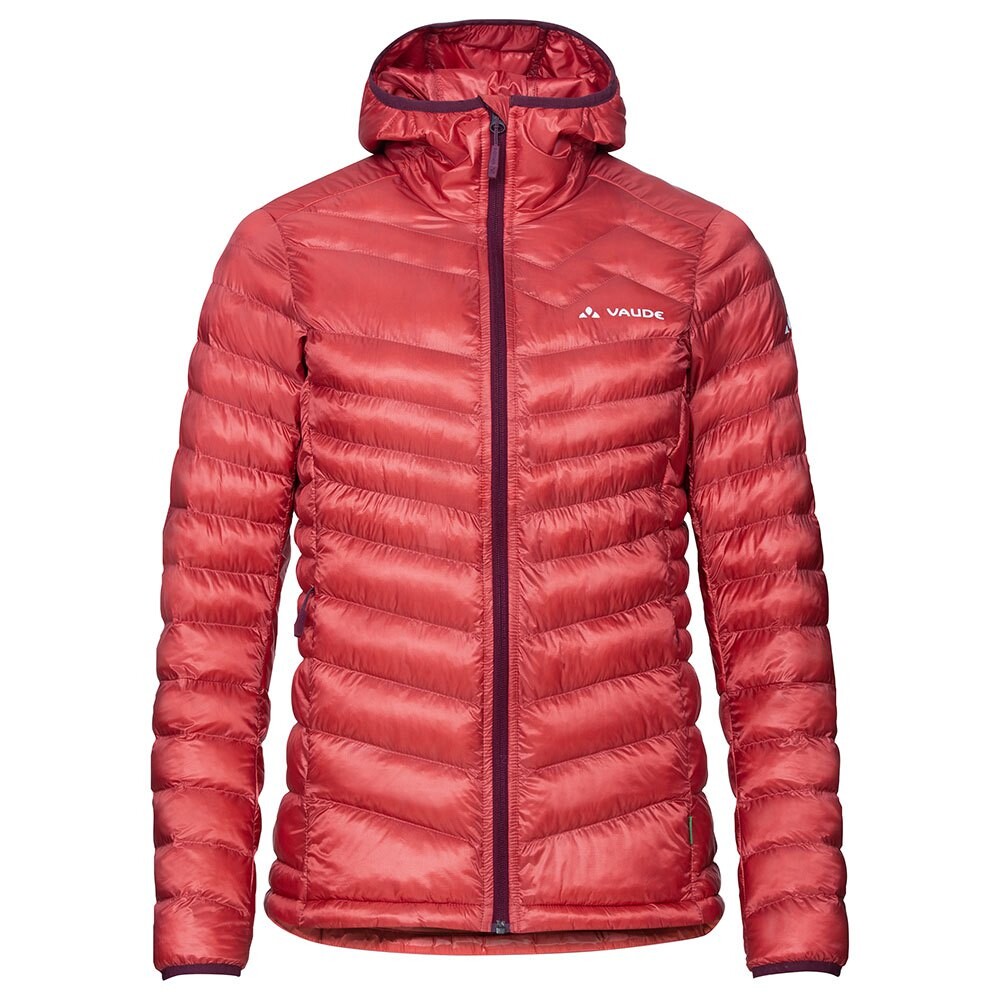 Женская исключительно легкая утепленная куртка с капюшоном для горных видов спорта, очень теплая, может храниться во внутреннем кармане, с компенсацией для климатической нейтральности.